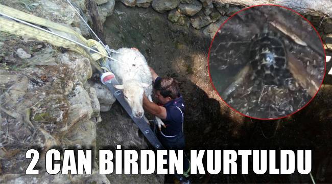 Denizli’de kuyuya düşen koyunu kurtarmaya giden itfaiye ekipleri kuyuya düşen kaplumbağayı da kurtardı.