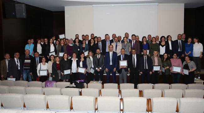 PAÜ Tıp Fakültesi Konferans Salonu’nda gerçekleşen törene Rektör Yardımcısı Prof. Dr. Semin Fenkci, Tabip Odası Başkanı Prof. Dr. Gökhan Önem, PAÜ Hastaneleri Başhekimi Prof. Dr. İbrahim Türkçüer, öğretim elemanları, ödül alacak personel ile yakınları katıldı.Hastanenin geçmişten bugüne tarihsel sürecini anlatarak sözlerine başlayan Pamukkale Üniversitesi Rektör Yardımcısı Prof. Dr. Semin Fenkci, “14 Mart Tıp Bayramı Haftası etkinlikleri çerçevesinde bu programı düzenledik. Tüm çalışanlarımız fedakarca ve özveriyle çalışıyorlar. Bu hafta ayrıca 20 yılı dolduran personelimize teşekkür belgesi veriyoruz. Pamukkale Üniversitesi Hastanesi’nin bugünlere gelmesinde katkıları olan tüm çalışanlarımızı kutluyorum” dedi.Konuşmanın ardından 16 akademik ve 60 idari personel olmak üzere toplam 76 personele teşekkür belgesi takdim edildi. Plaket töreninin ardından hastanenin 13. katında Tıp Bayramı kutlamalarına devam edildi. Rektör Yardımcısı Prof. Dr. Semin Fenkci’nin de katıldığı etkinlikte pasta kesildi.
