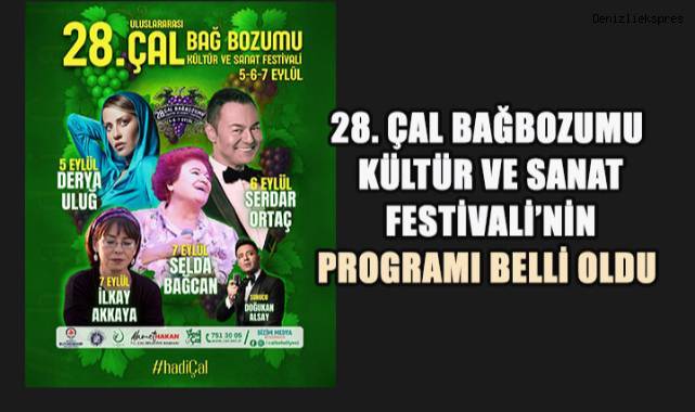 Üzüm tadında, pekmez kokusunun havaya karıştığı, bağların bereketiyle yeşeren Çal, bu yıl yine sanatla, müzikle ve coşkuyla buluşmaya hazırlanıyor. 28. Uluslararası Çal Bağbozumu Kültür ve Sanat Festivali, 5-6-7 Eylül tarihlerinde kapılarını açacak.