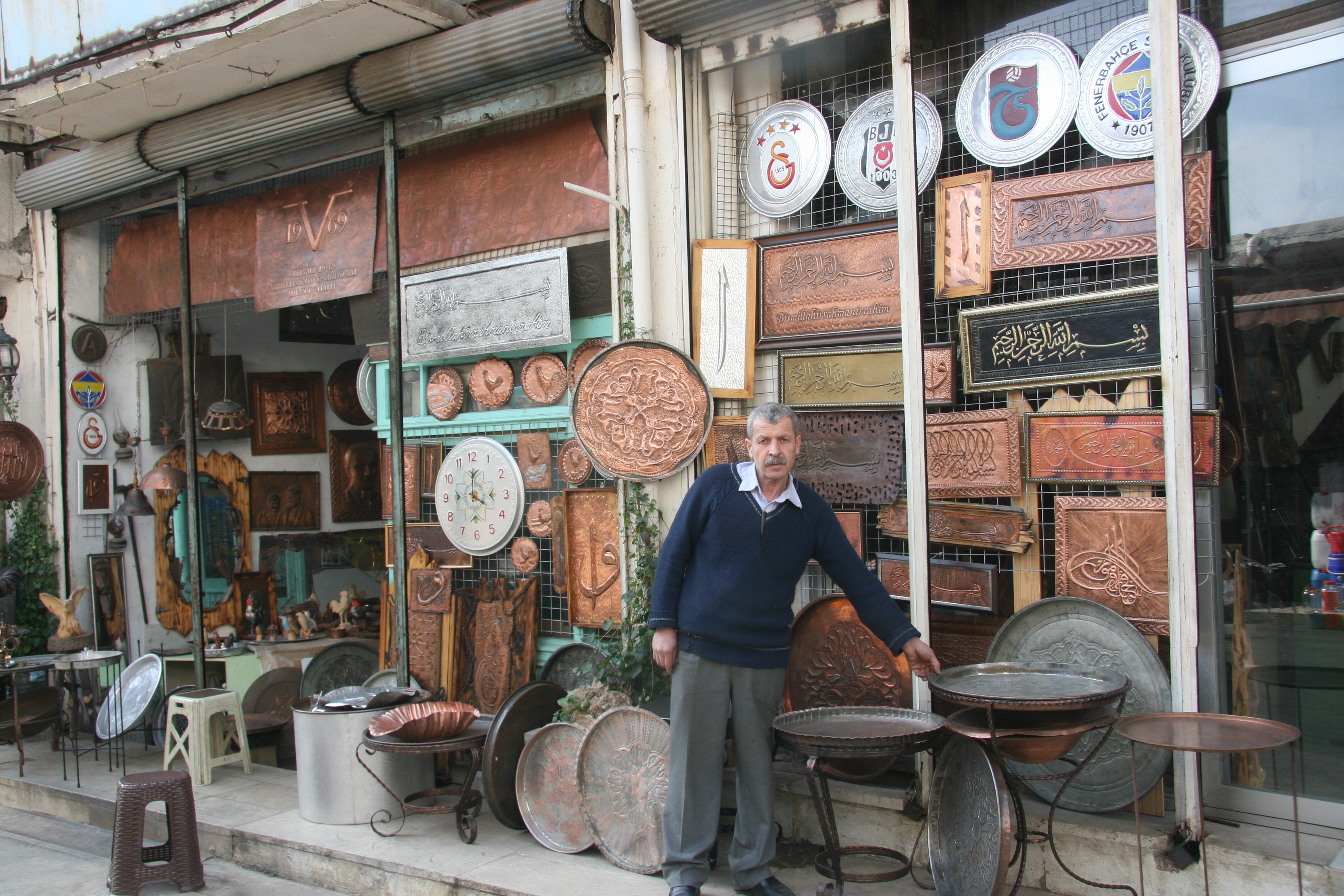 Demirel’in atölyesine giren müşteri ve vatandaşlar ise duvarlarda asılı duran bakırdan iki boyutlu rölyef eserleri hayranlıkla izliyorlar.