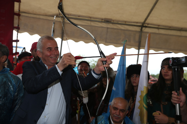 ÇADIRLAR KURULDUEski Türk savaşçılarının kıyafetlerinin ve kullandığı silahların sergilendiği programda Oğuz boylarını temsilen çadırlar kuruldu. Denizli Büyükşehir Belediyesi Mehteran Takımı ve Halk Oyunları Grubu'nun gösterilerinin düzenlendiği etkinlikte Denizli'ye özgü keşkek ve tarhana çorbasının yanında Özbek pilavı, ayran ve çeşitli ikramlar yapıldı. Yağışlı havaya rağmen coşku içinde geçen tören vatandaşlar tarafından büyük bir beğeni ile izlendi.