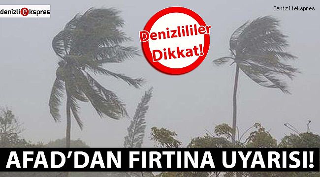 Denizli İl Afet Ve Acil Durum Müdürlüğü, resmi sosyal medya hesabından yapılan uyarıda kentte bugün fırtına uyarısında bulundu.
