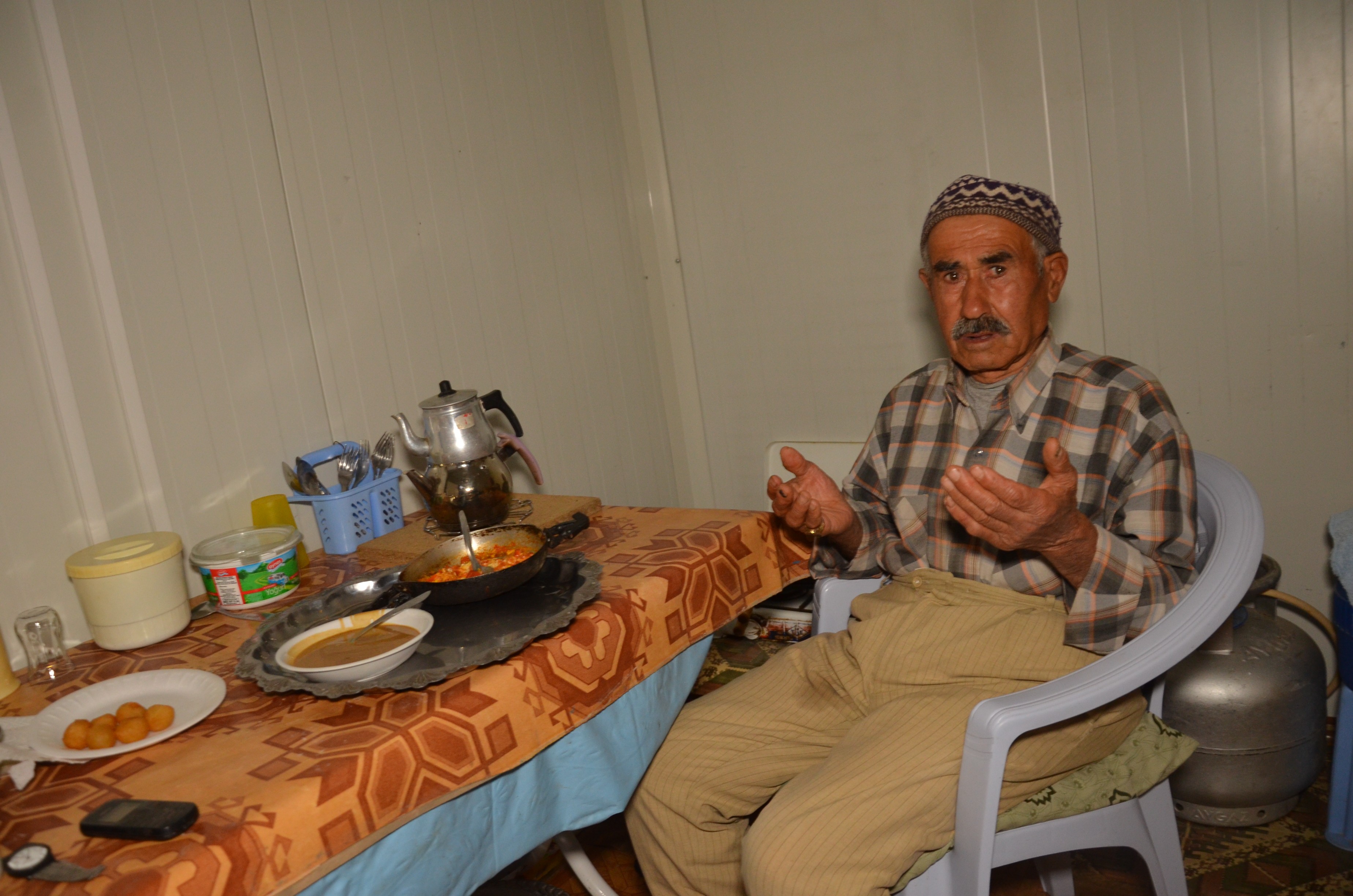 Yaşanan depremde evi yıkılan ve eşiyle yaşadığı çadırda ilk iftarını açan Ramazan Güngör (65), kendilerine konteynır verilmediğini ifade ederek, “İlk orucumuzu çadırda açtık. Kent merkezinde oğullarımın yaşadığı ev benim üzerime olduğu için bize konteynır vermediler. Biz bundan ayrılamayız, her şeyimiz burada. Ben burada büyüdüm her şeyim burada. Bu köyde hayallerim var, atalarımdan kalan bu yerlerden gidemem. Konteynır istiyoruz, yaşam burada bizim için çok zor.” diye konuştu.