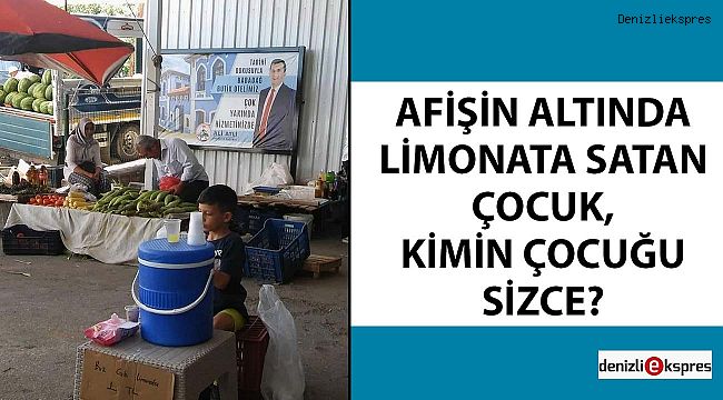 CHP Denizli Genlik Kolları Başkanı Tugay Odabaşıoğlu, Babadağ Belediye Başkanı Ali Atlı’nın bir afişini paylaştı sosyal medya sayfasında, Afişe bakanlar sadece Başkan Atlı’yı gördü. Oysa Odabaşıoğlu’nun dikkat çekmeye çalıştığı afişin önünde su satan çocuktu. Odabaşıoğlu paylaşımında, “Önde limonata satan çocuk, O çocuk Başkan Ali Atlı'nın büyük oğlu, Belediye başkanı oğlu. Helal kazancı öğreniyor” dedi.