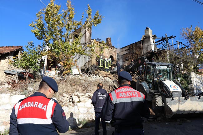 Yakınlarının haber vermesi üzerine bölgeye itfaiye, 112 Acil ve jandarma ekipleri sevk edildi. Ekiplerin yaklaşık 1 saat süren çalışması sonucu yangın söndürüldü. Yangında bitişik haldeki 3 ev kullanılamaz hale geldi.