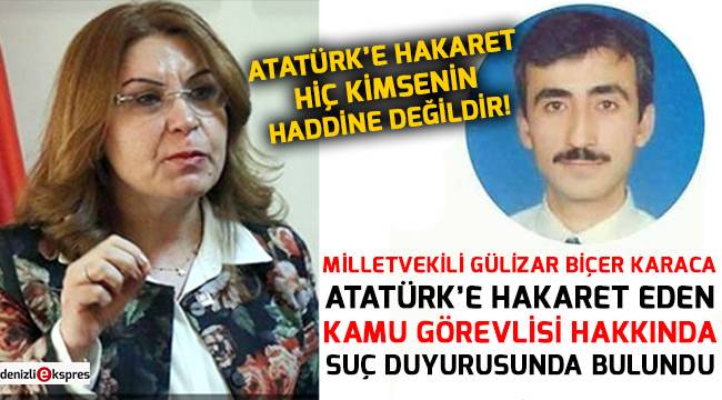 CHP Denizli Milletvekili Gülizar Biçer Karaca “Cumhuriyetimizin kurucusu Gazi Mustafa Kemal Atatürk'e dil uzatma cüretinde, manevi hatırasına hakaret gafletinde bulunan bu kişinin hakareti cezasız kalmamalı.” değerlendirmesinde bulundu.