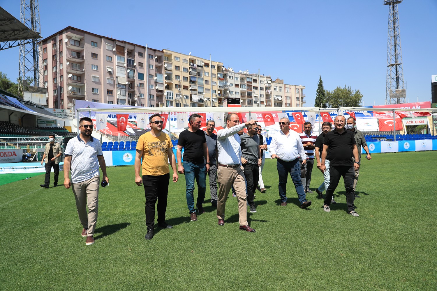 Denizli Atatürk Stadı, bugüne kadar tarihe tanıklık eden birçok olaya sahne oldu. Yarın yine bir ilk Atatürk Stadı’nda yaşanacak. Pamukkale Belediyesi, kent merkezinde ilk kez Pamukkale Yağlı Güreşleri adıyla çok önemli bir organizasyona imza atacak. Tarihi Kırkpınar Güreşleri’nde altın kemer kazanan başpehlivanların da aralarında bulunduğu 38’i başpehlivan 500 pehlivan yarın Denizli Atatürk Stadı’nın çimlerinde Denizlili güreş severler için mücadele edecek. Sabah 10.00’da başlayacak ve gün boyu devam edecek olan bu tarihi güreşleri sporseverler ücretsiz olarak takip edebilecekler. Tüm pandemi önlemlerinin alındığını söyleyen Başkan Örki, stadın dezenfekte edildiğini ve girişte ateş ölçümü ile HES kodu sorgulaması yapılacağını belirtti.