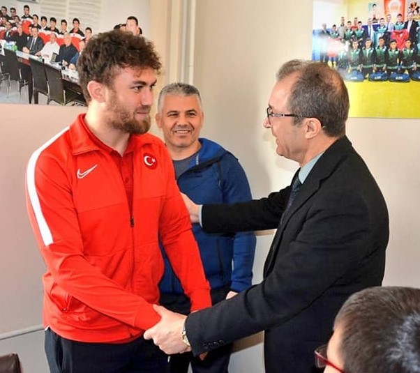 güreşçi, İl Müdürü Ahmet İbanoğlu’nun da katıldığı programda sporcularla