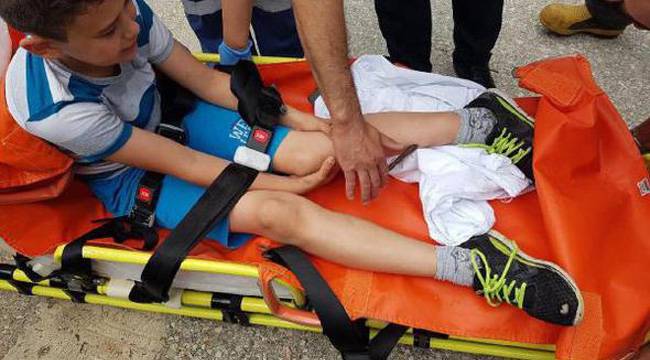 Denizli'de sitenin bahçesinde top oynarken düşen çocuğun bacağına, inşaat demiri saplandı.