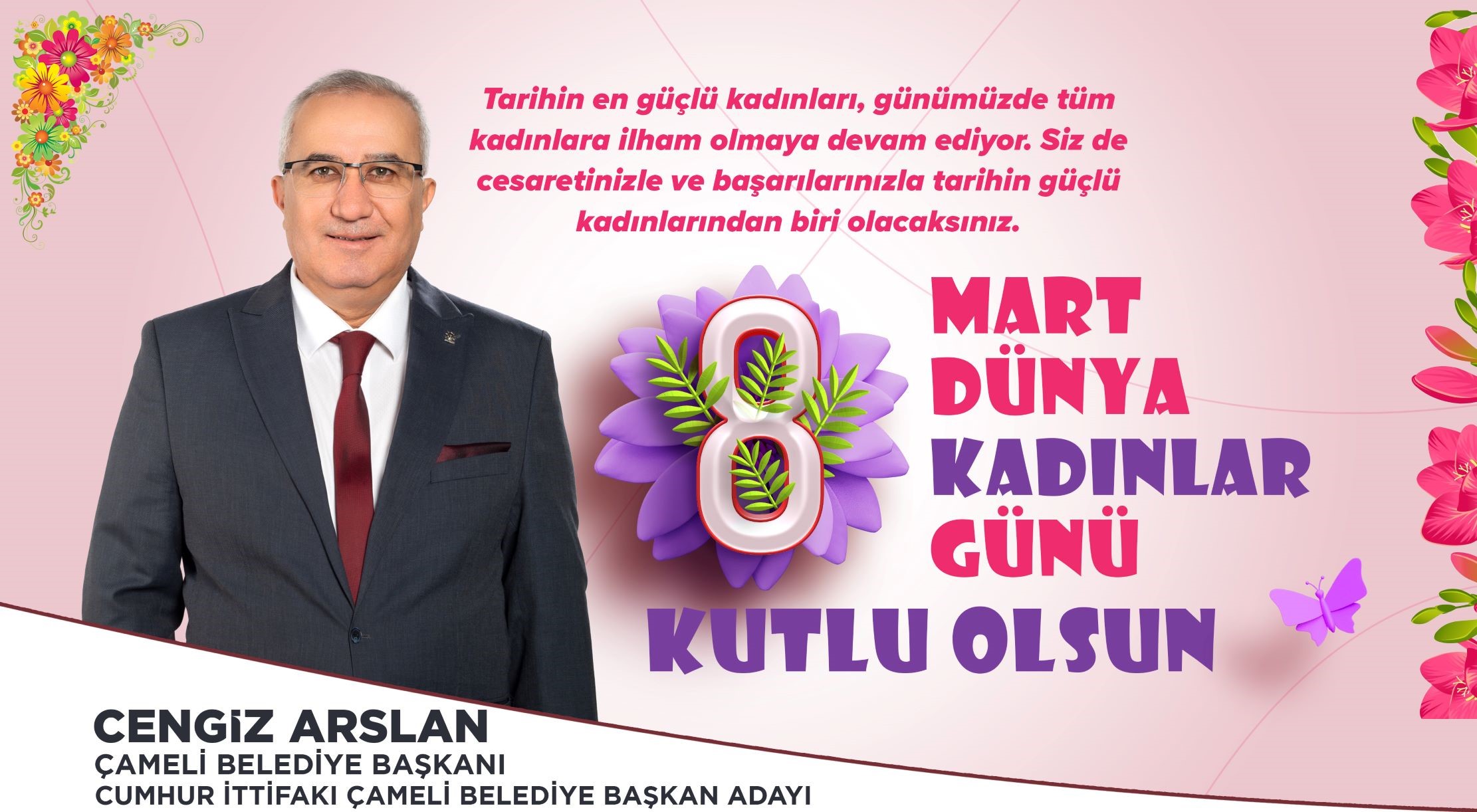 Çameli Belediye Başkanı Cengiz Arslan, 8 Mart Dünya Kadınlar Günü dolayısıyla bir mesaj yayımlayarak kadınların toplum yapısındaki önemine vurgu yaptı. Arslan, Türk kadınının fedakarlığını ve toplumdaki önemini vurgulayarak mesajında şunları söyledi: