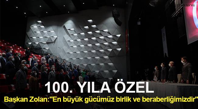 Türkiye'ye yönelik saldırıların geçmişte olduğu gibi bugün de devam ettiğini anlatan Başkan Zolan, şöyle konuştu: "Bu saldırılar her ne şekilde gelirse gelsin Türk milletinin gücü bunu def etmeye her zaman yetecektir. Bu saldırılara karşı en büyük gücümüz birlik ve beraberliğimizdir. Bu saldırılar karşısında amasız, fakatsız hep beraber dimdik durmamız lazım. Bunu bugüne kadar başardık, bundan sonra da başaracağız." Milli Şair Ersoy'un İstiklal Marşı'nı Kurtuluş Savaşı sona ermeden yazdığını ifade eden Başkan Zolan, "Düşman işgali sürerken TBMM İstiklal Marşımızı kabul etmiş ve istiklal mücadelesine ayrı bir ruh getirmiştir. Emek verenlere minnet ve şükranlarımızı sunuyoruz. Bize düşen vatanımıza, bayrağımıza, tüm değerlerimize sımsıkı sahip çıkmaktır. Bu duygularla İstiklal Marşımızın kabulünün 100. yılını kutluyorum. Allah bu millete bir daha İstiklal Marşı yazdırmasın" diye konuştu.