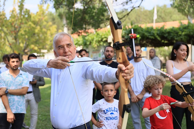 Renkli görüntülerin yaşandığı etkinlikte Başkan Zolan’ın profesyonelleri aratmayacak şekilde ok atışı yapması gençlerden büyük alkış aldı.