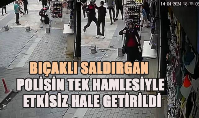 Olay anı güvenlik kameralarına anbean yansıdı. Görüntülerde; A.Ö.’nün tartıştığı kişilerin üzerine doğru koştuğu ve bir bıçak darbesi salladığı görülüyor. Görüntülerin devamında ise bir esnafın sopa yardımıyla ayırmaya çalıştığı sırada yunus timlerinin koşarak gelmesini gören A.Ö., elindeki bıçağı yere atıyor. Polis memuru ise tek hamleyle A.Ö.’yü etkisiz hale getiriyor.