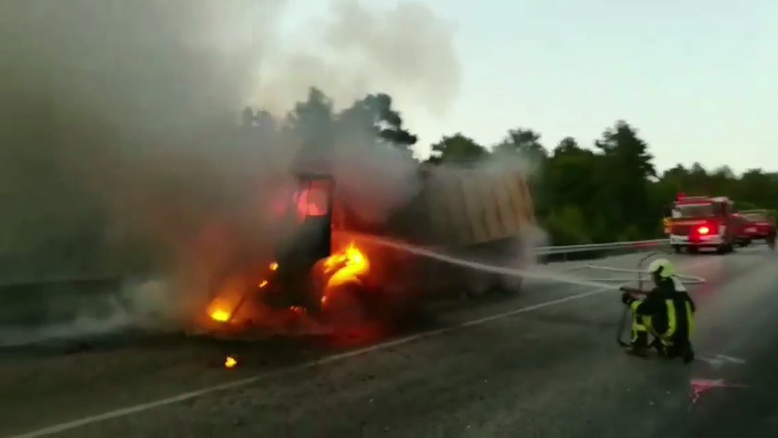 Yoldan geçene diğer sürücülerin ihbarı üzerine bölgeye Denizli Büyükşehir Belediyesi ve Çameli Orman İşletme itfaiye ekipleri yönlendirildi. Bölgeye gelen itfaiye ekipleri yangına müdahale ederek söndürme çalışmalarına başladı. Kısa sürede alevlerin söndürüldüğü kamyon küle dönerken, kullanılamaz hale geldi. Ekiplerin alevlere müdahale ettiği anların görüntüsü ise ortaya çıktı.