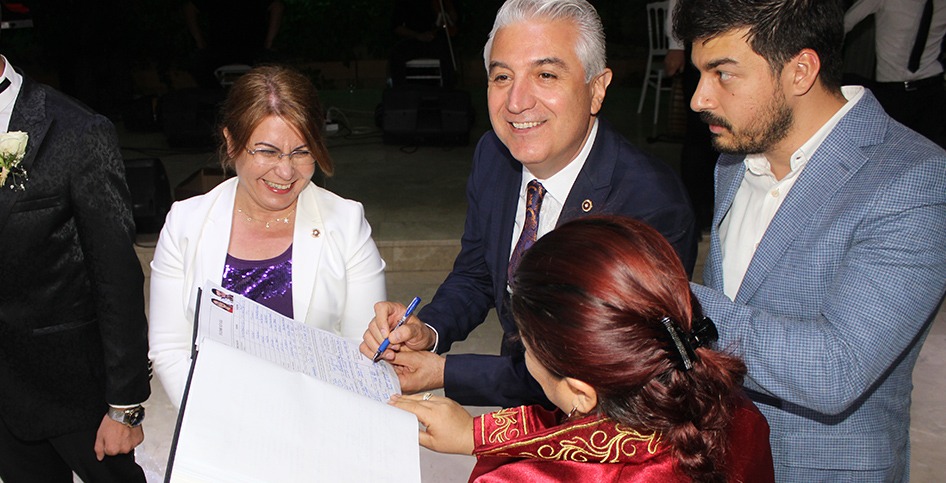 CHP Gençlik Kolları İl Başkanı Tugay Odabaşıoğlu ile eski dönem CHP Pamukkale Belediye meclis üyesi Özkan Aslan’ın yeğeni Nilay Aslan’la, Deda Garden düğün salonunda dünyaevine girdiler. CHP Genel Başkan Yardımcısı ve Denizli Milletvekili Gülizar Biçer Karaca, CHP Gençlik Kolları Genel Başkanı Emre Yılmaz, CHP Denizli Milletvekili Teoman Sancar, CHP Eski Genel Başkan Yardımcısı Umut Oran, CHP Denizli İl Başkanı Mahir Akbaba, Merkezefendi İlçe Başkanı Tolga Varlıker, CHP Pamukkale İlçe Başkanı Osman Tabu, Merkezefendi Belediye Başkanı Şeniz Doğan, Bozkurt Belediye Başkanı Birsen Çelik, Serinhisar Belediye Başkanı Hüseyin Gemi, Honaz Belediye Başkanı Yüksel Kepenek, Babadağ Belediye Başkanı Ali Atlı, meclis üyeleri, gençlik kolları, kadın kollarıi ilçe başkanları ve çok kalabalık davetlinin katıldığı düğün bütün CHP’lileri bir araya getirdi. Nikahı Merkezefendi Belediye Başkanı Şeniz Doğan kıydı. Doğan yaptığı konuşmada, “Burada, sadece nikah kıymıyor, bir hayali gerçekleştiriyoruz. Seçim sürecinde, adaylığımız kesinleştiği zaman Tugay yanıma geldi. ‘Umarım, nikahımı sen kıyarsın’ dedi. Bugün mutlu bir olaya tanıklık ettiğimiz gibi, aynı zamanda, Tugay'ın hayalini de gerçekleştirmenin mutluluğunu yaşıyoruz. Ömür boyu bütün hayallerinin gerçekleşmesini yürekten dilerim. Ömür boyu mutlu olsunlar” diye konuştu.