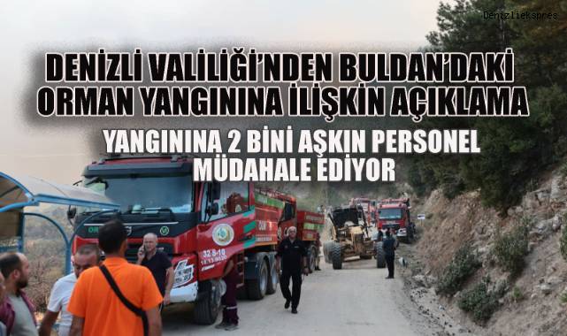 Denizli’nin Buldan ilçesinde devam eden orman yangınına havadan ve karadan yoğun müdahale sürüyor. Denizli Valiliği’nden yapılan açıklamaya göre, yangına 20 helikopter ile havadan, 619 araç ve 2 bin 205 personel ile karadan müdahale ediliyor.