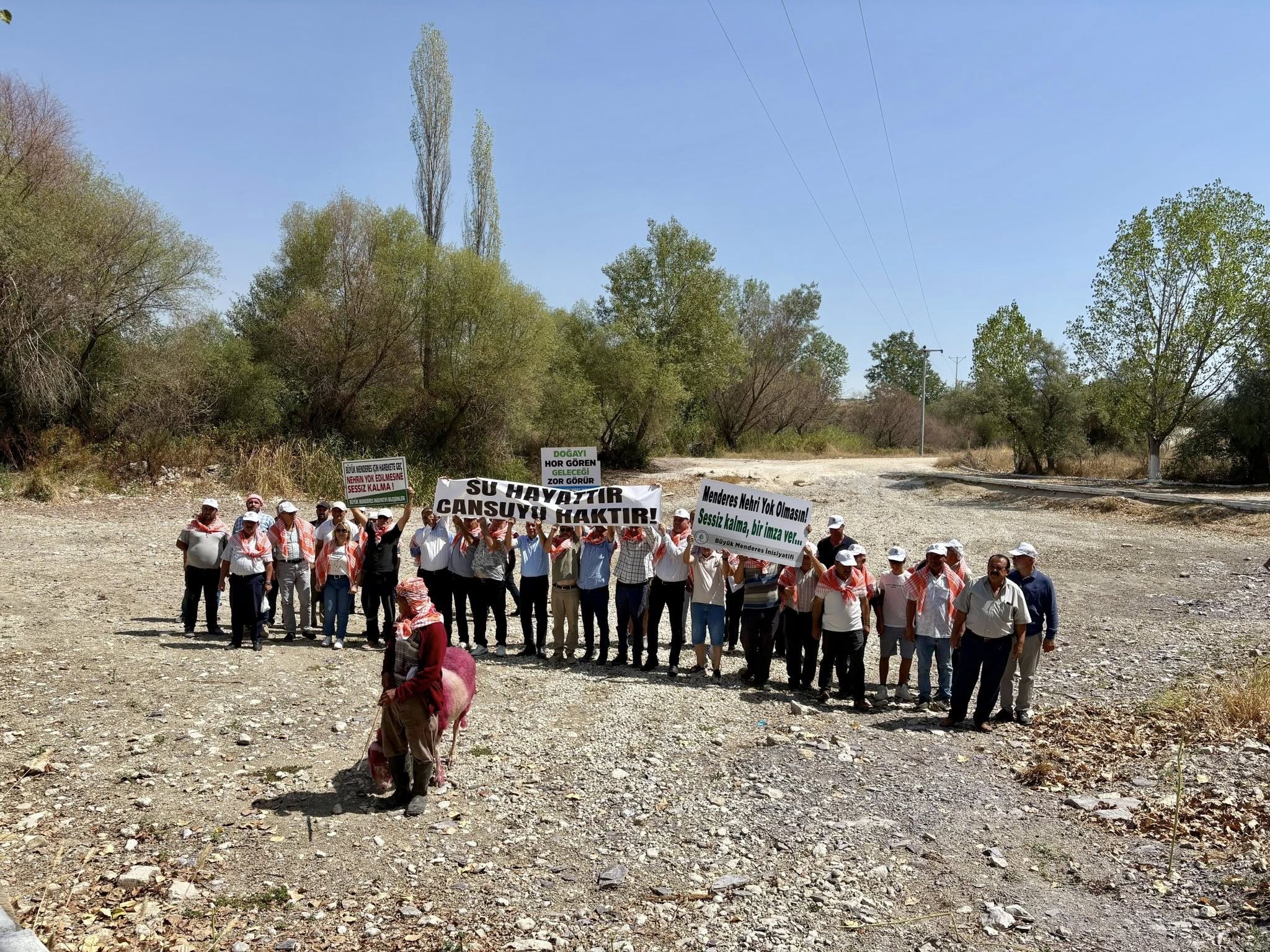 Etkinliğe katılanlar ellerinde “Su hayattır, can suyu haktır” yazılı pankartlar taşıdı. Çallı Sanayici ve İş İnsanları Derneği Başkanı Mehmet Atılsın, “Geldiğimiz nokta trajedi. Beş yıldır Menderes’in kuruması nedeniyle ekolojik denge bozuldu. Üzümler erken hasada geliyor. Bu sadece ekonomik değil, kültürel bir yıkım. Bir nehir akmazsa tarım da kültür de biter” dedi.
