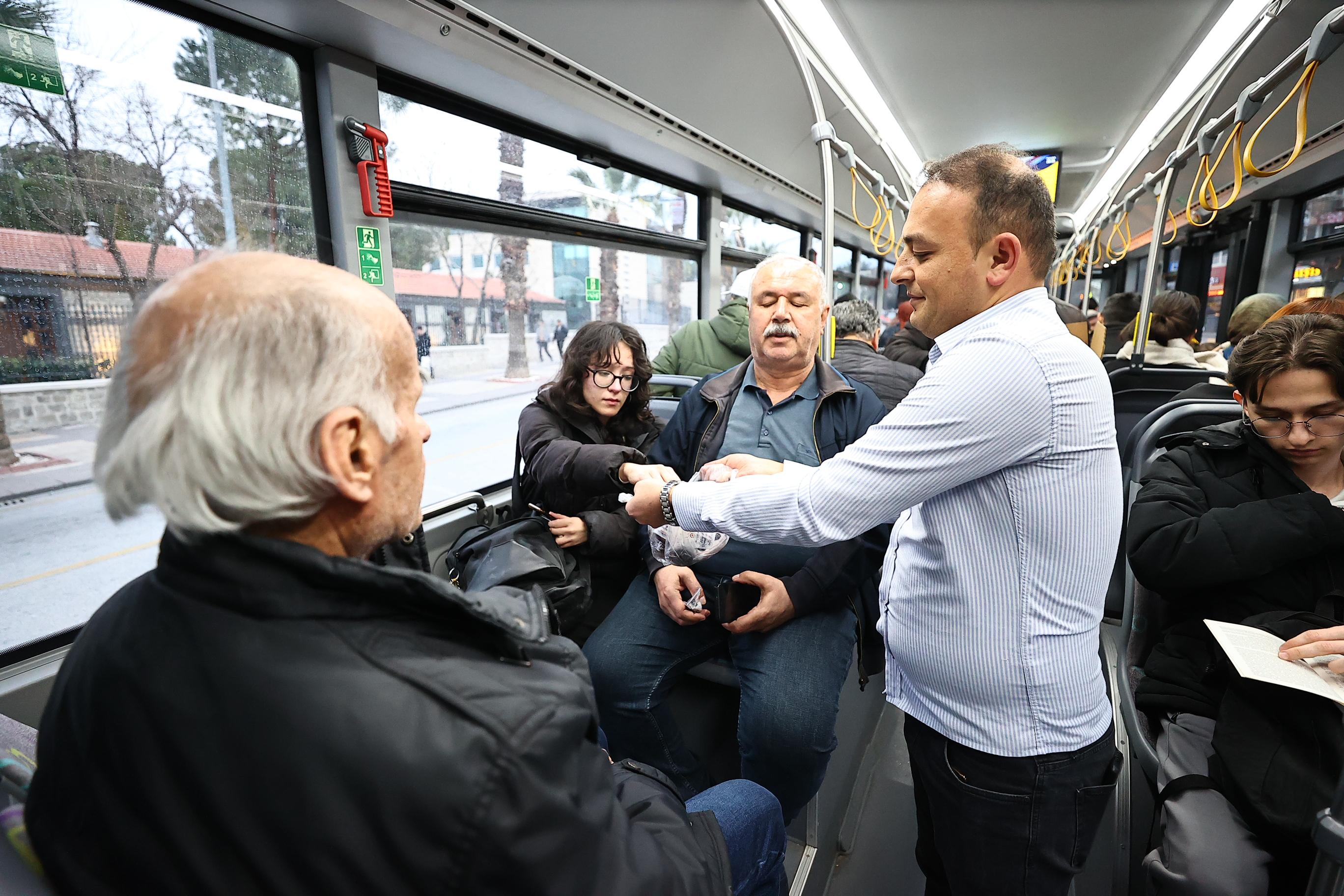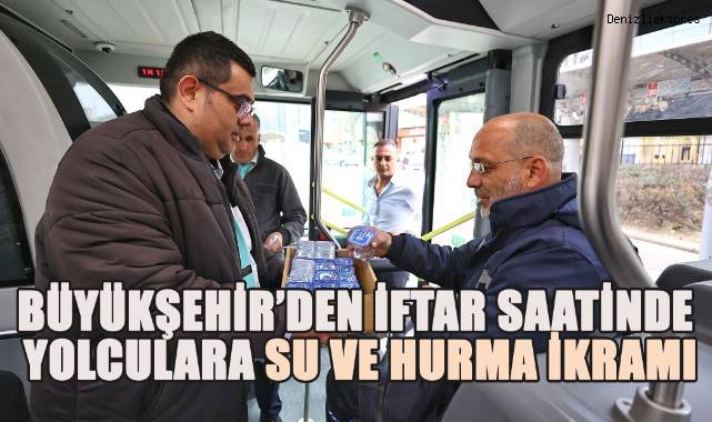 Denizli Büyükşehir Belediyesi, Ramazan ayında toplumsal dayanışmayı güçlendiren anlamlı bir uygulamaya imza attı. Belediye ekipleri, iftar saatinde otobüslerde yolculuk yapan vatandaşlara su ve hurma ikram ederek, oruçlarını açmalarına yardımcı oluyor.