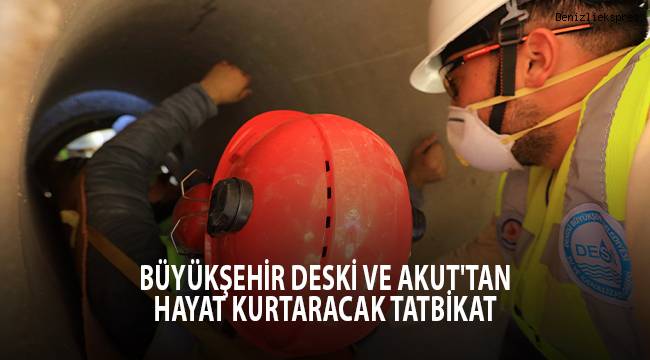 36 saatlik arama kurtarma tatbikatı Denizli, Antalya, Muğla, Bursa, Manisa ve İzmir'den katılan gönüllü AKUT ekipleri ile Büyükşehir DESKİ Arama-Kurtarma Timi olmak üzere 80 kişilik ekip yaşanan olası deprem sonrasında arama kurtarma faaliyeti gerçekleştirdiler. Tesisteki çadırlarda konaklayıp 36 saat süren arama kurtarma faaliyeti ile afet eğitimi alan ekipler başarılı bir tatbikata imza attı. AKUT işbirliğinde düzenlenen Ege'nin en geniş katılımlı tatbikatında görev alan Büyükşehir DESKİ Arama-Kurtarma Timi de çalışmalarıyla övgü topladı.