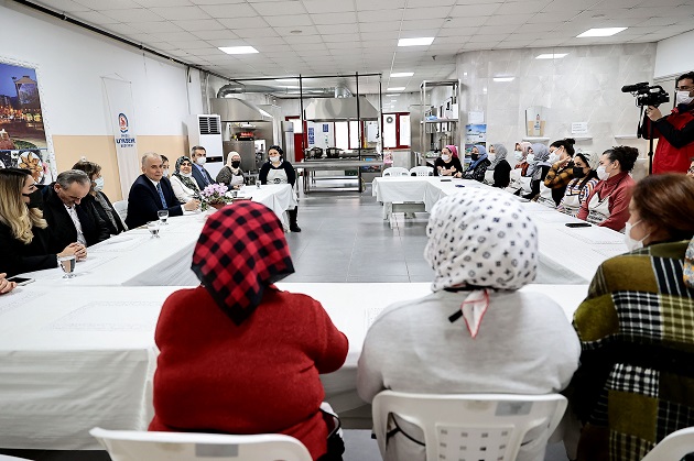 Denizli Büyükşehir Belediyesinin kadınların istihdamını artırmaya katkı sağlamak amacıyla kurduğu gastronomi mutfağında 3. dönem aşçı yardımcılığı kursu devam ediyor. Denizli Büyükşehir Belediye Başkanı Osman Zolan, Büyükşehir Belediyesi Fatih Sosyal Etkinlik Merkezi'ndeeğitim alan kursiyerleri ziyaret etti. Başkan Zolan'a Büyükşehir Belediyesi Kent Konseyi Başkanı Ali Değirmenci, Genel Sekreter Yardımcısı Ali Aydın, Kent Konseyi Genel Sekreteri Baran Akın, Kent Konseyi Kadın Meclisi Başkanı Bilsen Özen ve beraberindekiler eşlik etti. Kadınlarla bir süre sohbet ederek, istek ve önerilerini dinleyen Başkan Osman Zolan, kursiyerlere başarılar diledi. Denizli ve Anadolu’da yaşayan Türk kadınlarının marifetli olduğunu vurgulayan Başkan Zolan, “Anadolu coğrafyası, çok çeşitli yemeklerin üretildiği bir kültüre sahip. Her şehrin kendine ait bir kültürü var. İstedik ki bir araya gelin, eğitimcilerimiz size işin teknik ve püf noktalarını öğretsin ve bildiklerinizi pekiştirin. İnşallah başarılı bir eğitim süreci geçirmişsinizdir” dedi.