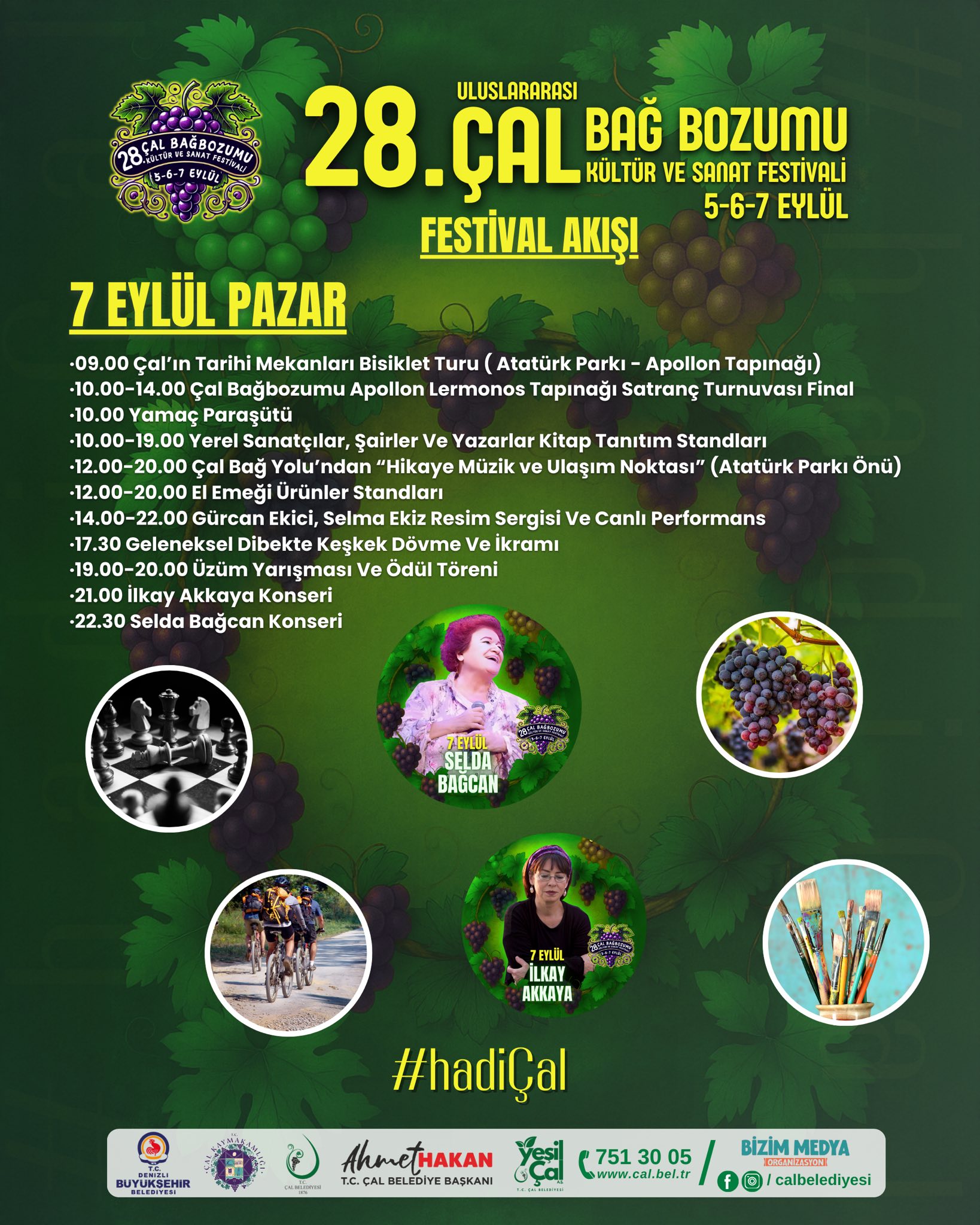 Festivalimize katılan, şarkılarıyla bizlere unutulmaz anlar yaşatan Sayın Serdar Ortaç’a ve bu eşsiz atmosferi bizlerle paylaşan tüm hemşehrilerime gönülden teşekkür ediyorum. Çal, bağ bozumu geleneğiyle, sanatıyla, müziğiyle yine en güzel anlara ev sahipliği yapmaya devam ediyor.”