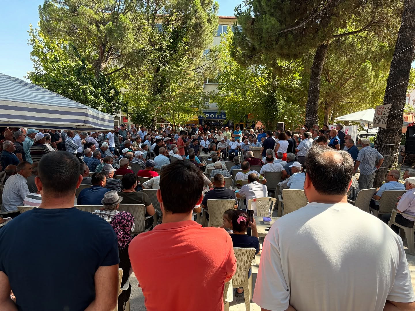 Kalabalık, Ziraat Odası Başkanı’nın sözlerini büyük alkışlarla destekledi. Çal Meydanı’nda üreticiler tek yumruk oldu.