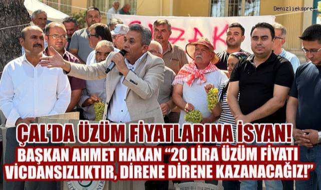 Denizli’nin Çal ilçesinde özel bir firmanın yaş üzüm fiyatını önce 20 TL, ardından tepkiler üzerine 25 TL’ye yükseltmesi, üreticileri tatmin etmedi. Girdi maliyetlerini karşılamayan bu rakama karşı Çallı üreticiler Çal Meydanı’nda toplandı ve tepkilerini haykırdı. Meydanda yüzlerce toplanan üreticilerin yanında dimdik duran isim ise Çal Belediye Başkanı Ahmet Hakan’dı. Başkan Hakan, üreticilerin yalnız olmadığını göstermekle kalmadı, firmalara ve devlete karşı sert mesajlar verdi.