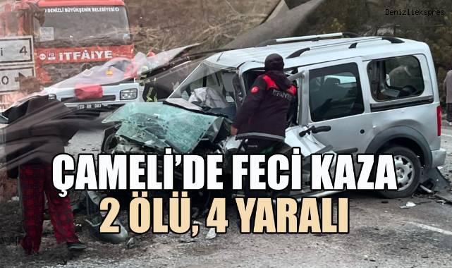 Denizli’nin Çameli ilçesinde meydana gelen trafik kazası can aldı. Hafif ticari araç ile otomobilin kafa kafaya çarpıştığı kazada iki sürücü yaşamını yitirirken, araçlardaki dört kişi yaralandı.