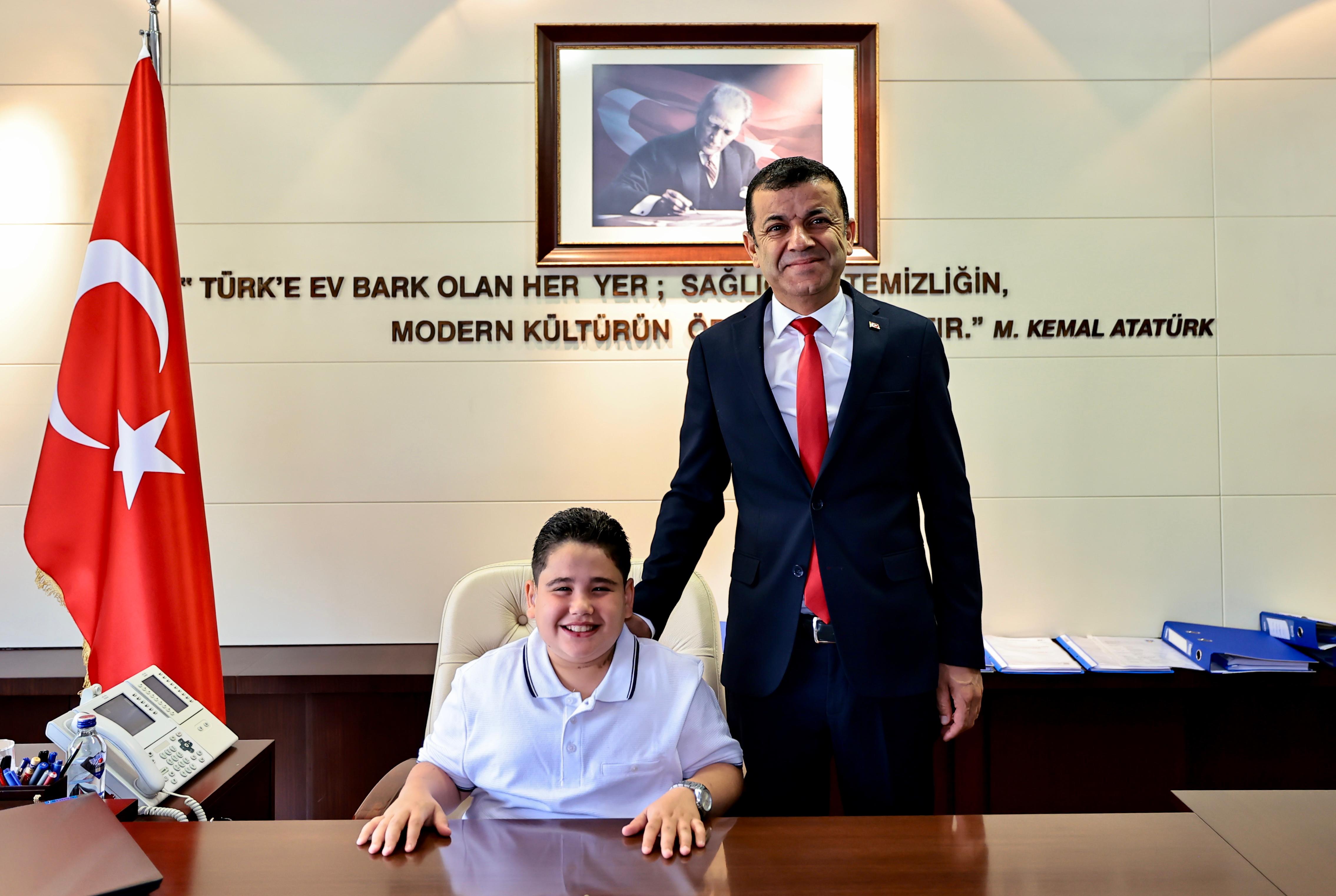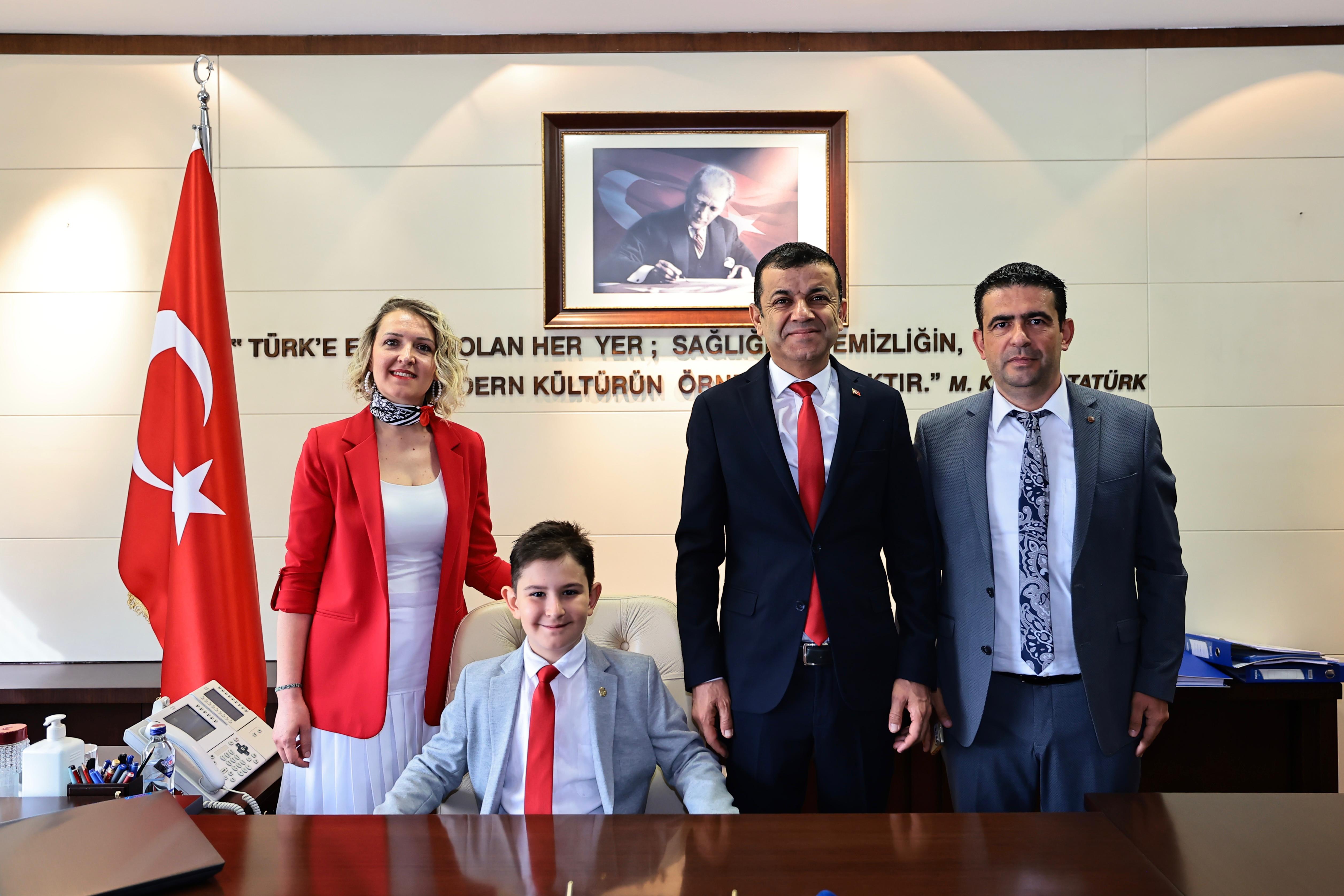 Ailelerinin ve öğretmenlerinin de eşlik ettiği çocuklar hep birlikte Başkan Çavuşoğlu’nun makamına oturarak 23 Nisan sevinci yaşadı.