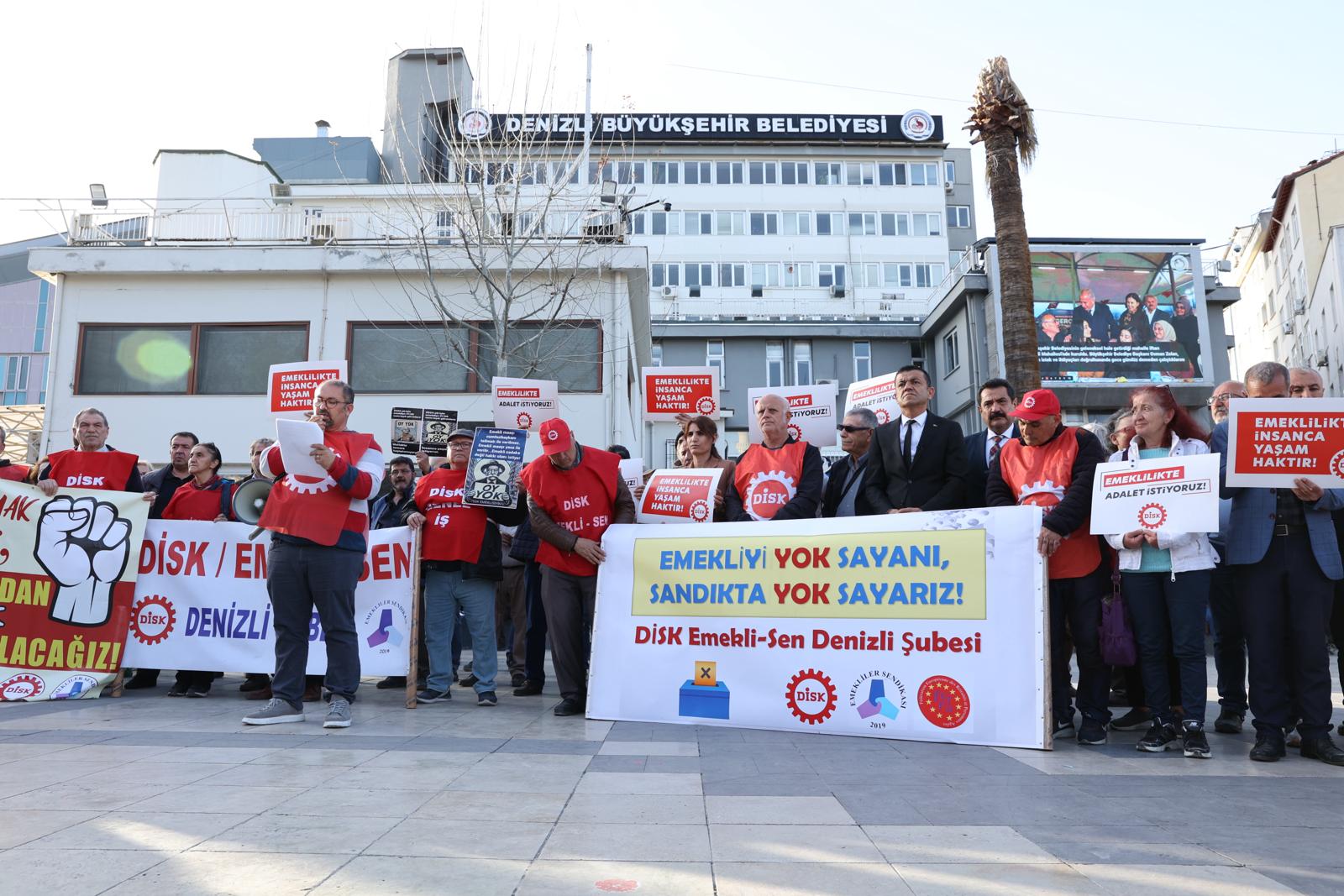 CHP Denizli Büyükşehir Belediye Başkan Adayı Bülent Nuri Çavuşoğlu, DİSK, Emekliler Sendikası ve Ferpa'nın öncülüğünde düzenlenen basın açıklamasına katılarak emeklilerin yanında olduğunu bir kez daha vurguladı.
