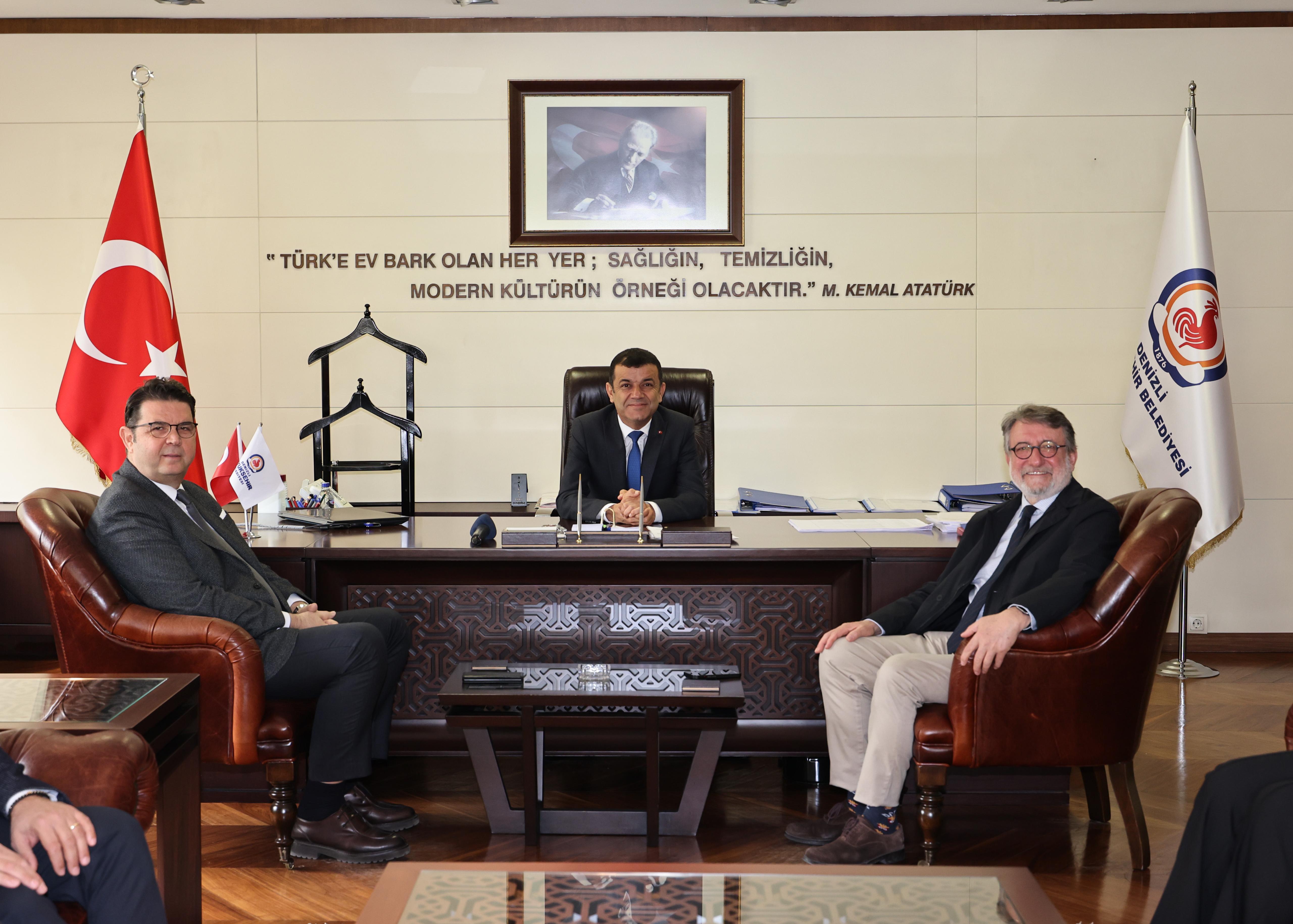 DENİB Başkanı Hüseyin Memişoğlu ve yönetim kurulu üyelerini ağırlayan Denizli Büyükşehir Belediye Başkanı Bülent Nuri Çavuşoğlu, üretimde kırmızı çizgisini açıklayarak, “Tarım arazilerinin yok olmaması şartıyla kim nerede, ne üretmek istiyorsa yanında duracağız" dedi.