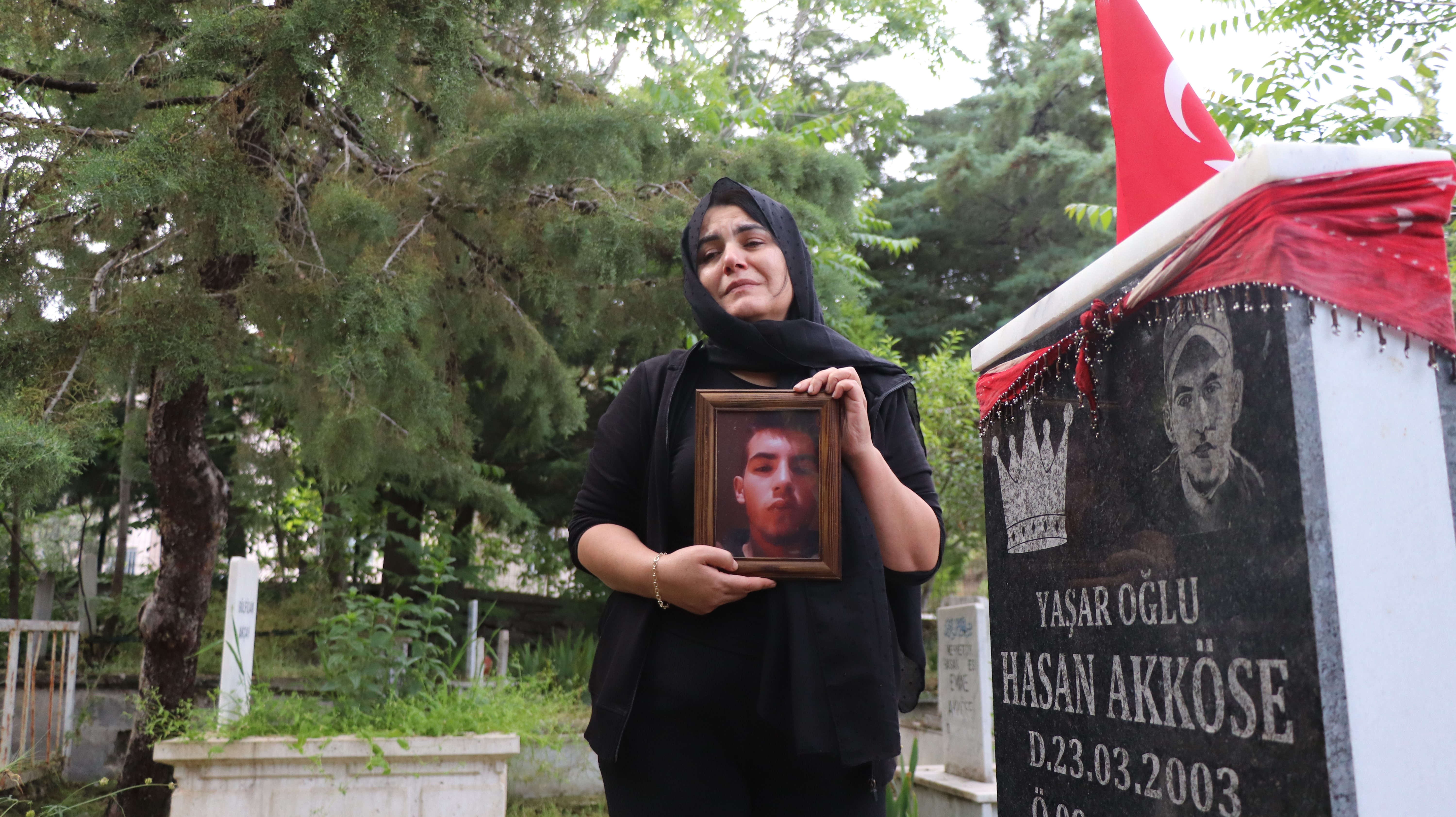 Çocuğunun cansız bedenine bile sarılamayan Hasan Akköse’nin annesi Aynur Kural, 4 kişinin serbest bırakılmasına tepki gösterdi. Daha öncede açtığı pankartlarla adalet isteyen anne Kural, 4 kişiden 2’sinin suçta ortak olmasına rağmen serbest bırakılmasına anlam vermediğini söyleyerek çocuğunun mezarının başında gözyaşlarına boğuldu. Aynur Kural, “Oğlum ve arkadaşı İsmail Yalçın’ı geçtiğimiz yıl 9 Haziran 2022’de 9 kişi tuzak kurdular. Av tüfeğiyle oğlumu öldürdüler. Arkadaşı İsmail Yalçın’ı sırtından vurmuşlar. Bu çocukları öldürdüler, kuyuya attılar, yaktılar 45 saat kazıldı çocuklar kuyudan öyle çıkarıldı. 7 kişi tutuklanmıştı sonra serbest bırakmalar oldu ve ben ifadeleri elime aldım okumaya başladım. Kaç aylardır yalnız başıma uğraşıyorum, beni sürekli tehdit ediyorlar. Şu anda tutuklu sadece 3 kişi kaldı. Şahıslar ‘beraber attık arabanın bagajına, benzin aldık, kuyuya birlikte attık ve cesetleri yaktık’ diyorlar. Bunları söylemelerine rağmen serbest bırakıldılar. İlk birinci mahkeme olmadı daha 14 Temmuz 2023’de olacak. Bunlar ‘biz yaptık’ demelerine rağmen mahkeme olmadan dışarıda serbestler, kaç aylardır uğraşıyorum. Çocuğumun babası beni tehdit ediyor. Hasan kendi halinde, hiç somurttuğunu göremezdiniz, herkesle konuşur ve yardım ederdi. Bu olayın sonuna kadar peşindeyim, ne kadar tehdit ederlerse etsinler. Ben oğlumun yüzüne bakmaya kıyamazdım. Ben nasıl yandıysam, benim ciğerlerim nasıl yanıyorsa, ömür boyu acı çekeceğim. Onlarda acı çeksin, herkes cezasını alacak, ben sağ olduğum sürece bu olayın peşini bırakmayacağım. Ben onu bırakıp gidemiyorum arkamdan bakıyor. Ben evlat acısı yaşarken bir taraftan adalet diye bağırıyorum” dedi.