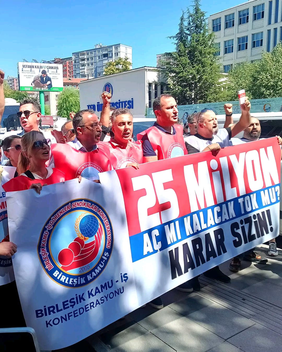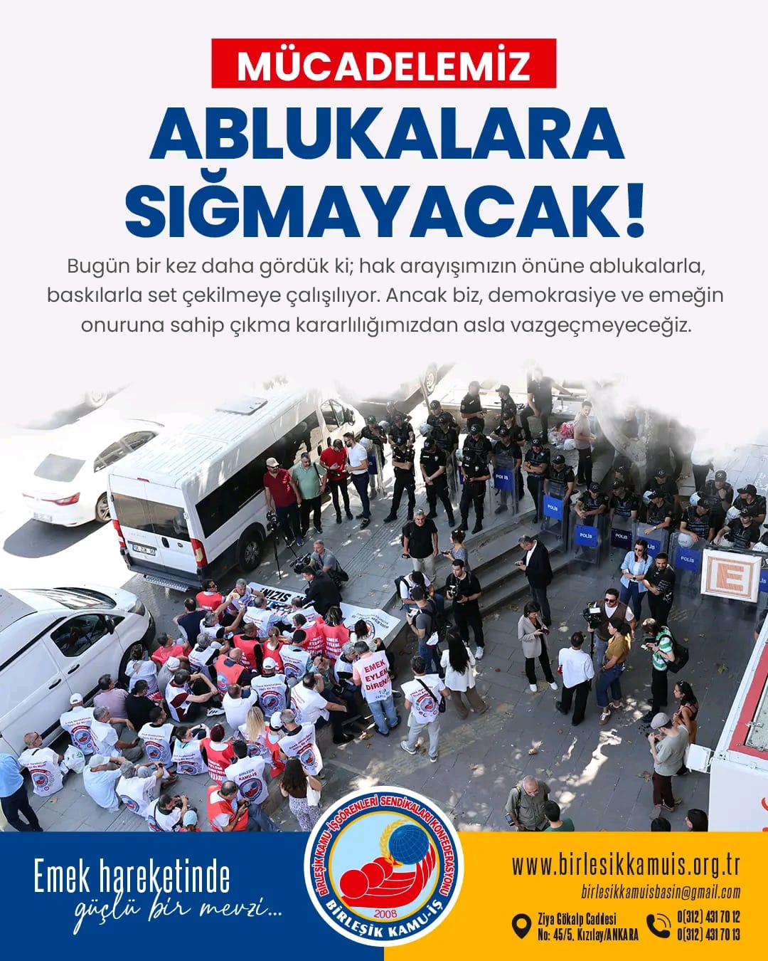 Kamu Görevlileri Hakem Kurulu’na (hakem heyetine) taşınma ihtimali gündemde olabilir; bu durum Birleşik Kamu-İş tarafından titizlikle değerlendirilecektir. Ancak hangi hukuki/mücadele yolu seçilirse seçilsin, konfederasyonumuz hem hukuki hem de demokratik tüm kanalları kullanarak üyelerinin çıkarlarını koruyacaktır. Kararlarımızı ve atacağımız adımları kamuoyuna şeffaf biçimde açıklayacağız.Polis tarafından kurulan ablukayı kınıyoruz. Birleşik Kamu-İş, üyelerinin hak arama iradesini susturmaya dönük hiçbir girişimi kabul etmez. Meydanlarda başlayan sesimiz; masalarda, kurumlarda ve gerektiğinde hukuki yollarla devam edecektir. ‘İnsanca Ücret, Onurlu Yaşam!’ talebimizden vazgeçmiyoruz.”