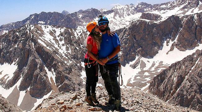 Dağcılık Federasyonu Denizli İl Temsilcisi Taylan Özgür, 10 arkadaşı ile birlikte Bayram’da Türkiye’nin en zor tırmanılan Niğde’nin Aladağlar Demirkazık Dağı’na zirve tırmanışı gerçekleştirdi. 3 bin 756 metre yüksekliği bulunan Demirkazık Dağı’nı tırmanan Denizlili dağcılar, burada sürpriz evlenme teklifine tanık oldular. Dağcılık Federasyonu Denizli İl Temsilcisi Taylan Özgür, zirvede sevgilisi Hatice Çimen’e sürpriz evlenme teklifinde bulundu. Şaşkınlık içinde kalan Hatice Çimen, Taylan Özgür’ün teklifine arkadaşlarının şahitliği ile evet dedi. Uzun zamandan beri sevgilisi Hatice Çimen’e sürpriz evlenme teklifi etmeyi planladığını belirten Dağcılık Federasyonu Denizli İl Temsilcisi Taylan Özgür, “Hatice’de profesyonel dağcı. 4 yıllık bir beraberliğimiz var. Demirkazık Dağı’nda sürpriz evlilik teklif etmeyi planladım, Zirvede evlenme teklifimi yaptım” dedi.