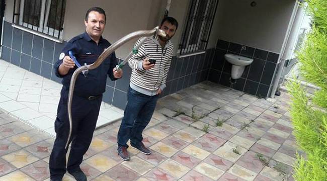 Pamukkale ilçesine bağlı Asmalıevler Mahallesinde eve giren yılanı İtfaiye ekipleri yakaladı.