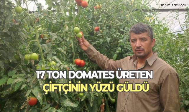 Denizli’nin Acıpayam ilçesine bağlı Dodurga Mahallesi’nde 20 dekarlık seradan, dekar başına 17 ton domates verimi alan üreticinin yüzü gülüyor.