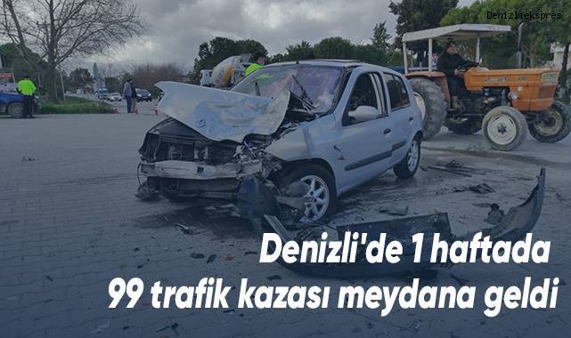 Denizli'de geçtiğimiz son bir hafta içerisinde 60’ı maddi hasarlı, 39’u yaralanmalı olmak üzere toplam 99 trafik kazası meydana geldiği açıklandı.