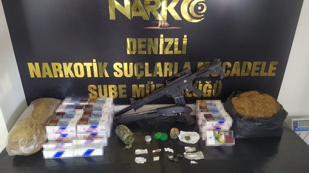 Denizli’de güvenlik güçleri, uyuşturucunun önüne geçmek için çalışmalarını sıklaştırdı. Bu çerçevede uyuşturucu madde ticareti yapan, kullanan şahısların tespiti ve yakalanmasına yönelik yürütülen çalışmalarda toplam 419 gram metamfetamin, 12 gram 1784 birim sentetik kannabinoid, 38 gram eroin, 36 gram esrar, 14 adet adet sentetik ecza hap, 5 adet ecstacy, 2 adet tüfek ve 200 TL para ele geçirildi.
