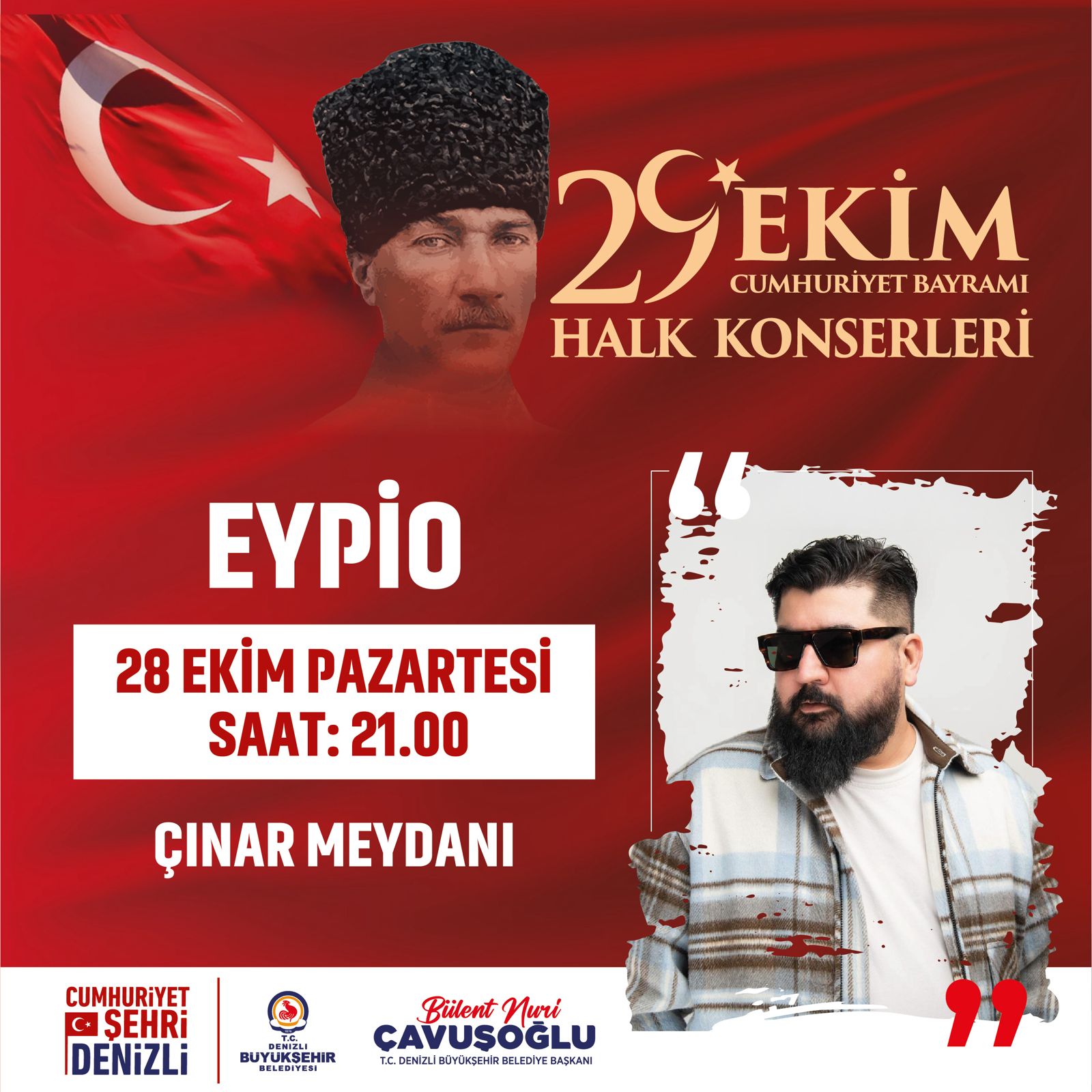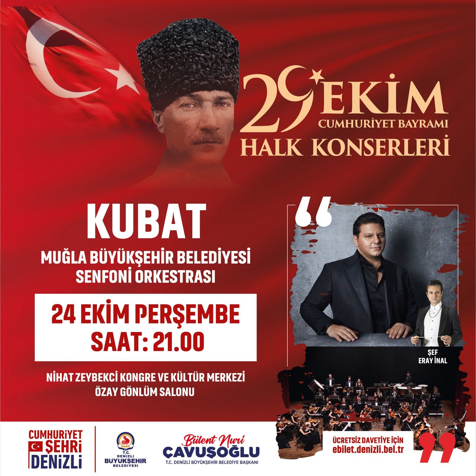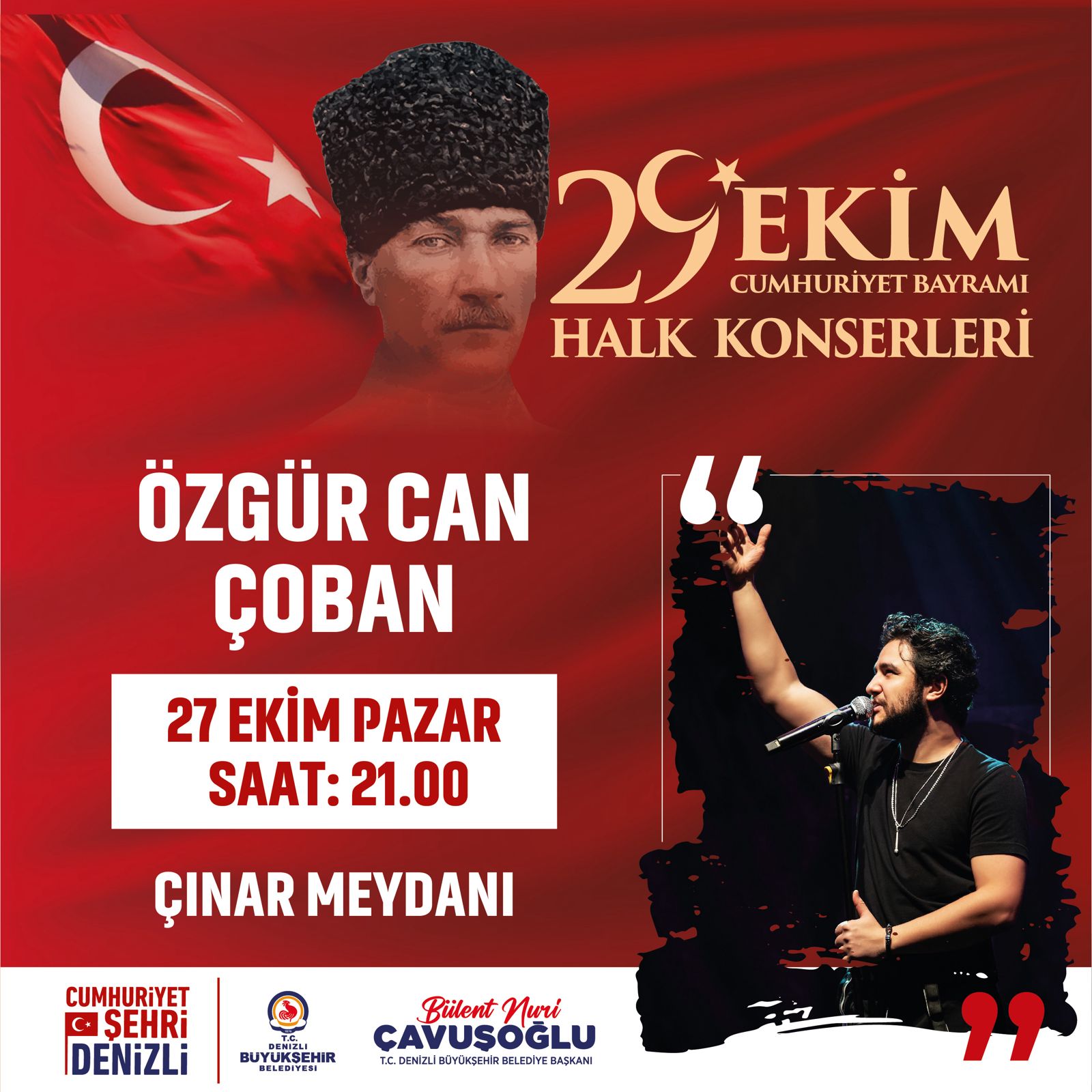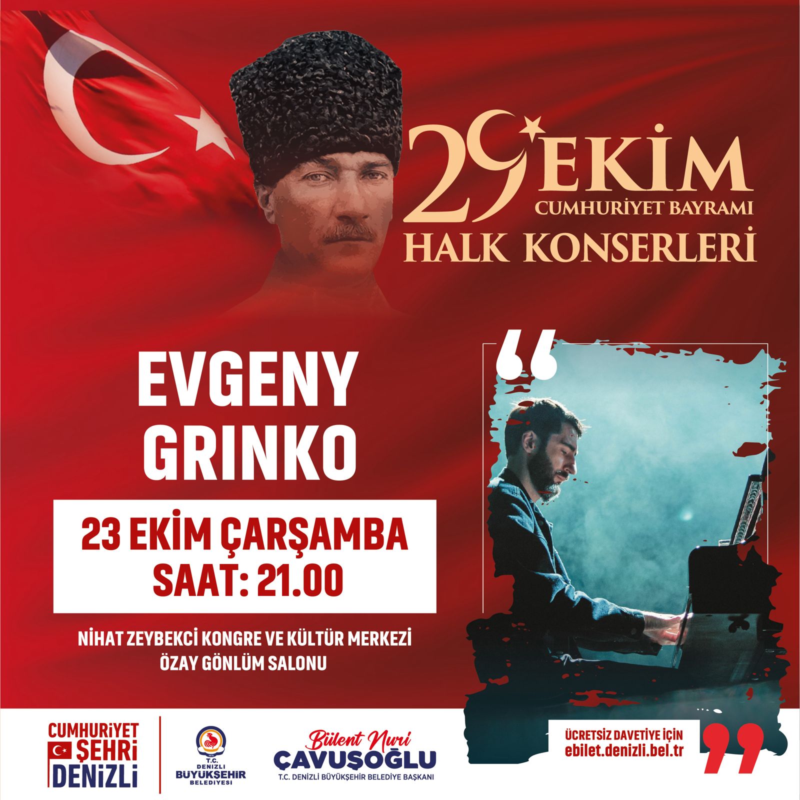 Denizli’yi sallayacak konserlerden ilki 23 Ekim’de Nihat Zeybekci Kongre ve Kültür Merkezi’nde dünyaca ünlü piyanist Evgeny Grinko olacak. 24 Ekim’de ise Muğla Büyükşehir Belediyesi Senfoni Orkestrası - Kubat Konseri düzenlenecek. Delikliçınar Meydanı’nda da birbirinden ünlü isimler Denizlililer için sahne alacak. Delikliçınar Meydanı’nda 26 Ekim'de Göksel Doğançay, 27 Ekim’de Özgür Can Çoban, 28 Ekim’de Eypio ve 29 Ekim’de Berkay konseri gerçekleştirilecek. Bunların dışında Atatürk filmi gösterimleri, halk oyunları ve bale gösterisi, spor turnuvaları, sergi ve defileler ile Cumhuriyet Bayramı coşkusu Denizli’de 9 gün boyunca dolu dolu yaşanacak.