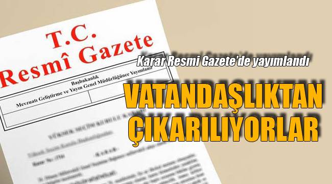 Haklarında soruşturma yürütülen ve firari durumda olan, aralarında 6 Denizlilinin de bulunduğu 130 kişi vatandaşlıktan çıkarılıyor.Haklarında soruşturma yürütülen ve firari durumda olan, aralarında FETÖ lideri Fethullah Gülen, HDP Milletvekilleri Faysal Sarıyıldız ve Tuğba Hezer ile eski HDP milletvekili Özdal Üçer'in de bulunduğu 130 isim, 3 ay içinde Türkiye'ye dönmemeleri halinde vatandaşlıktan çıkartılacak.Resmi Gazetede yer alan açıklamada şöyle denildi: 26/9/2004 tarihli ve 5237 sayılı Türk Ceza Kanunu'nun 302'nci, 309'uncu, 310'uncu, 311'inci, 312'nci, 313'üncü, 314'üncü ve 315'inci maddelerinde yazılı suçlar nedeniyle haklarında Cumhuriyet Savcılıkları/ Mahkemeler tarafından soruşturma ve kovuşturma yürütülen ve yabancı ülkede bulunmaları nedeniyle kendilerine ulaşılamayan aşağıdaki kimlik bilgileri yer alan kişilerin, 5901 sayılı Türk Vatandaşlığı Kanununun 29'uncu maddesinin 2'nci fıkrası gereğince bu ilanın Resmi Gazete'de yayınlandığı tarihten itibaren 3 ay içinde Türkiye'ye dönerek ilgili mercilere müracaat etmedikleri taktirde anılan Kanun hükümlerine göre Türk vatandaşlıklarının kaybettirileceği ilanen tebliğ olunur.İŞTE O DENİZLİLİLER1982 Denizli doğumlu Muhammet Bayındır,1974 Acıpayam doğumlu İsmail Erkoç,1974 Acıpayam doğumlu Mehmet Ali Erbil,1972 Çivril doğumlu Sıtkı Baş,1967 Çal doğumlu Ahmet Zoroğlu,1973 Tavas doğumlu Arif Mollaosmanoğlu