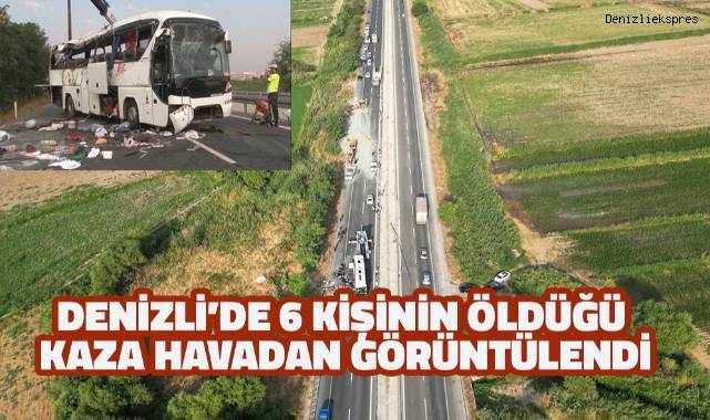 Denizli’de düğüne giden otobüsün karıştığı trafik kazasında 6 kişi ölürken, 42 kişi de yaralandı. Vefat eden vatandaşların kimlik belirleme çalışması sürerken kaza yeri de havadan insansız hava aracıyla görüntülendi.