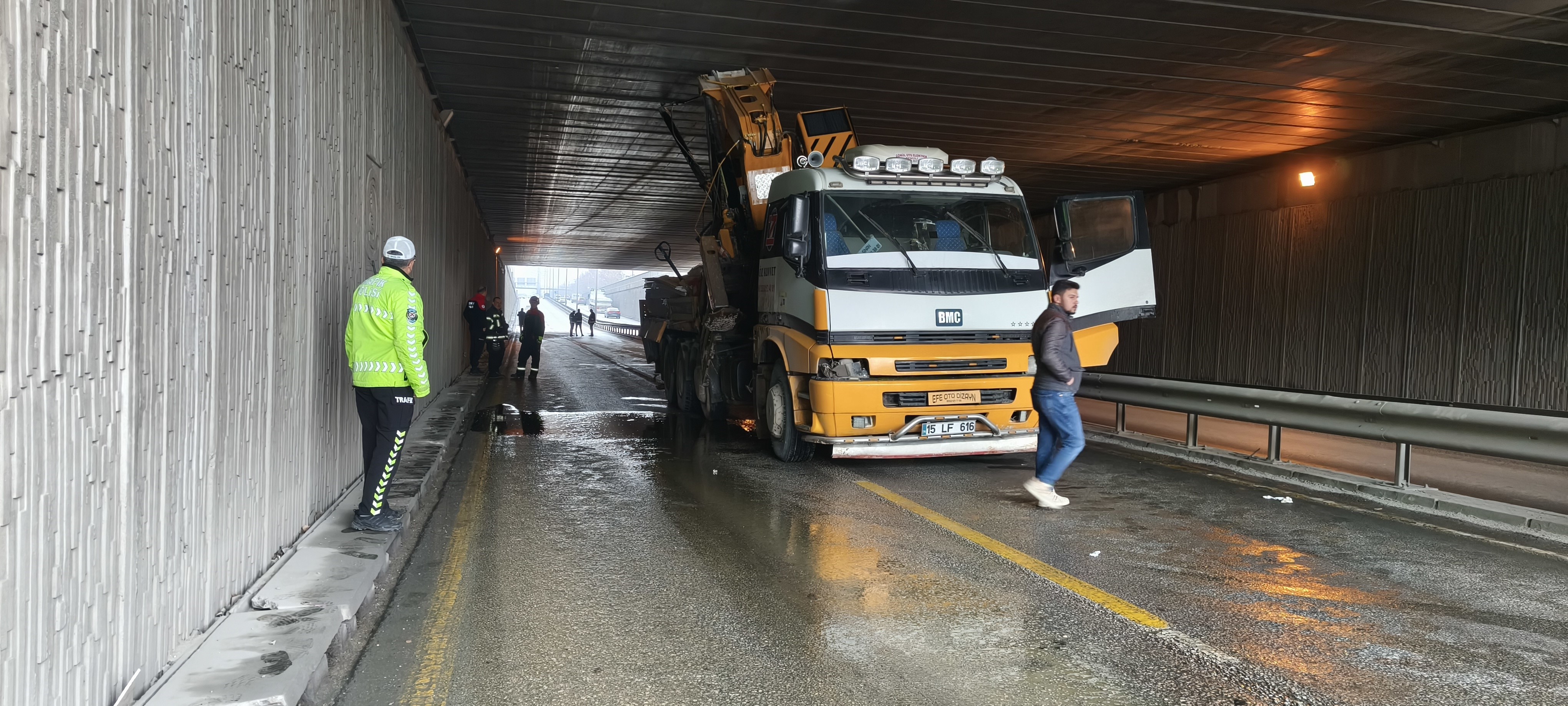 Tünel Girişindeki Çarpma Kazaya DönüştüOlay, İlbade Mahallesi’ndeki Zafer Katrancı alt geçidinde meydana geldi. Sinan K. (41) yönetimindeki 15 LF 616 plakalı vinç, yükseklik sınırını dikkate almadan alt geçide girdi. Vincin kolu geçidin girişine çarpmasına rağmen sürücünün ilerlemeye devam etmesi, aracın tünel içerisinde sıkışmasıyla sonuçlandı. Çarpmanın etkisiyle yola dökülen yağ, kaygan zemine yol açtı ve kurtarma çalışmalarını zorlaştırdı.