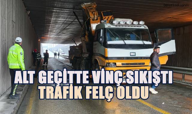 Denizli’nin Merkezefendi ilçesinde, yapı malzemesi taşıyan bir vinç alt geçitte sıkışarak hem trafiği hem de çevre düzenini altüst etti. Yoğun uğraşlara rağmen henüz kurtarılamayan vinç, İzmir Bulvarı'nda trafik çilesine neden oldu.