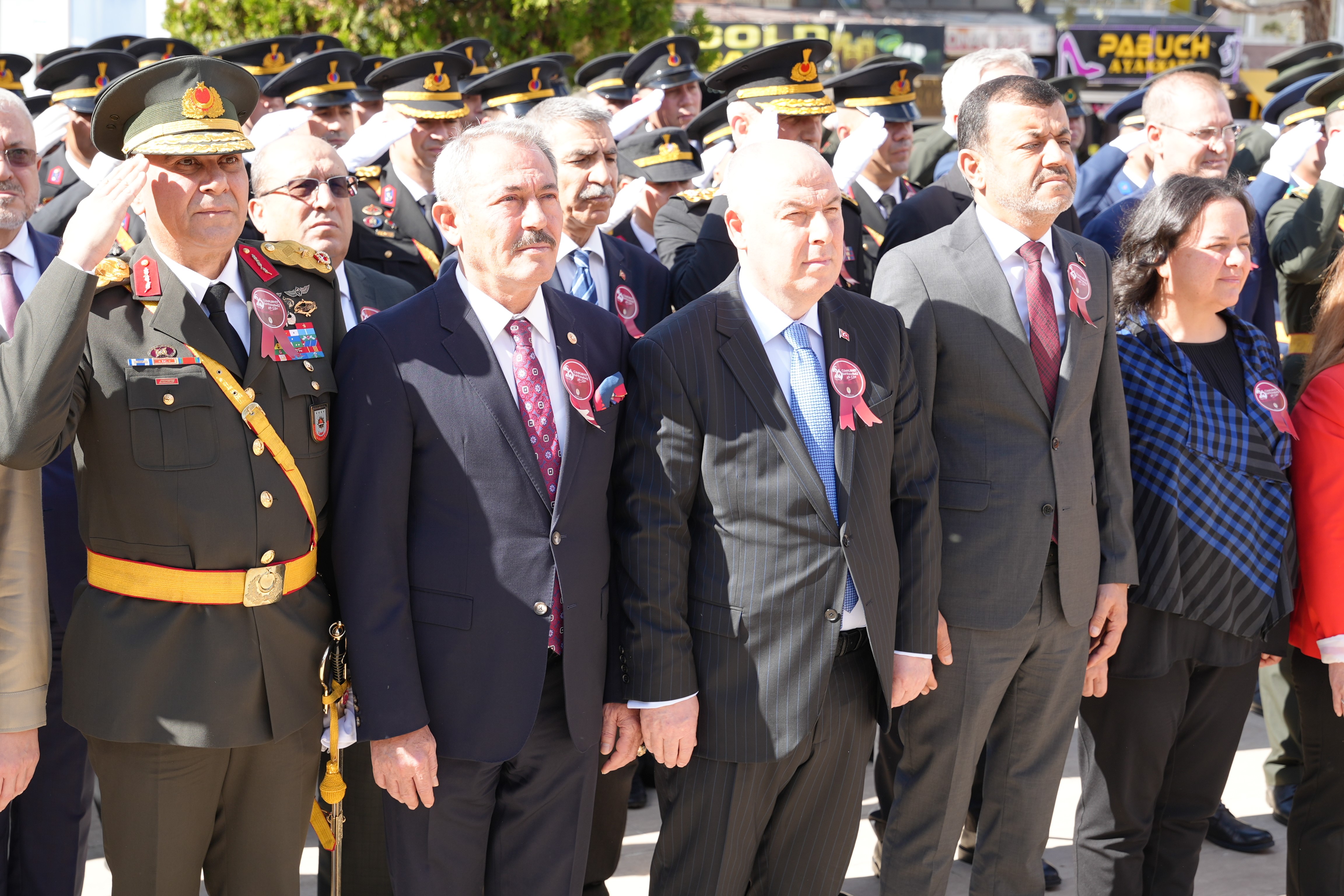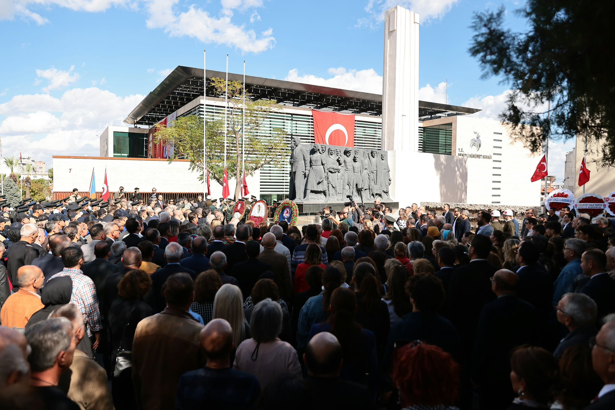 Pamukkale Kaymakamlığı önündeki Atatürk Anıtı’nda düzenlenen törene Denizli Valisi Ömer Faruk Coşkun, Denizli Büyükşehir Belediye Başkanı Bülent Nuri Çavuşoğlu, 11. Komando Tugay ve Garnizon Komutanı Tuğgeneral Turgut Muhammet Çalışkanlar, Pamukkale ve Merkezefendi kaymakamları, Merkezefendi Belediye Başkanı Şeniz Doğan, milletvekilleri, siyasi parti temsilcileri, kamu kurum ve kuruluşları ile meslek örgütlerinden çok sayıda isim ve vatandaş katıldı.
