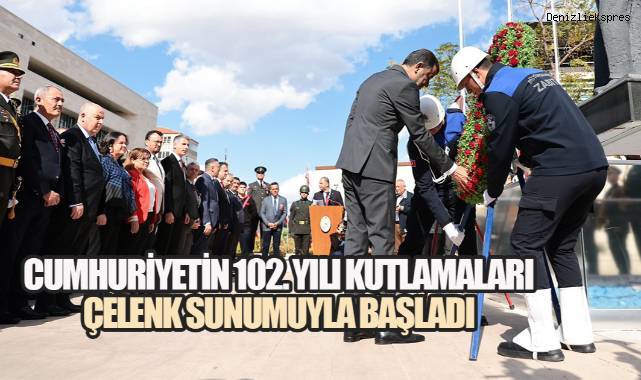 Denizli’de Türkiye Cumhuriyeti’nin kuruluşunun 102. yılı ve 29 Ekim Cumhuriyet Bayramı, protokol üyelerinin Atatürk Anıtı’na çelenk sunmasıyla başladı.