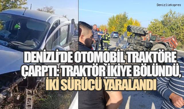 Denizli’nin Çivril ilçesinde seyir halindeki otomobil ile traktörün çarpışması sonucu traktör adeta ortadan ikiye ayrıldı. Feci kazada iki sürücü de yaralanırken, otomobil hurdaya döndü.