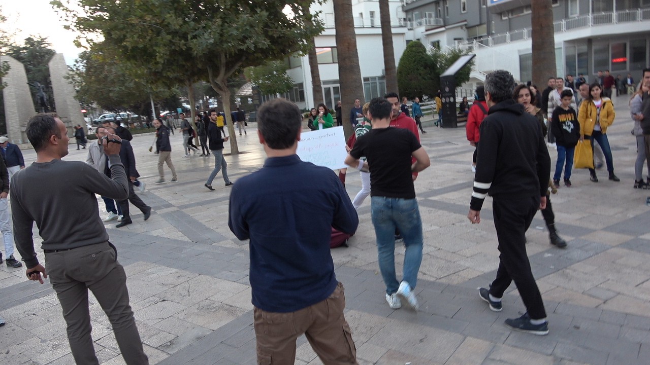 Eylemcilerden 1'i kadın 2 şahsı kelepçeleyerek gözaltına alan polisler, diğer eylemcileri de dağıttı. Yaklaşık 10 dakika süren olay sonrası polis gözaltına aldığı 2 kişiyi emniyete götürdü. Çevreden geçen vatandaşlar da yaşanan olayı ilginç bakışlarla izledi.