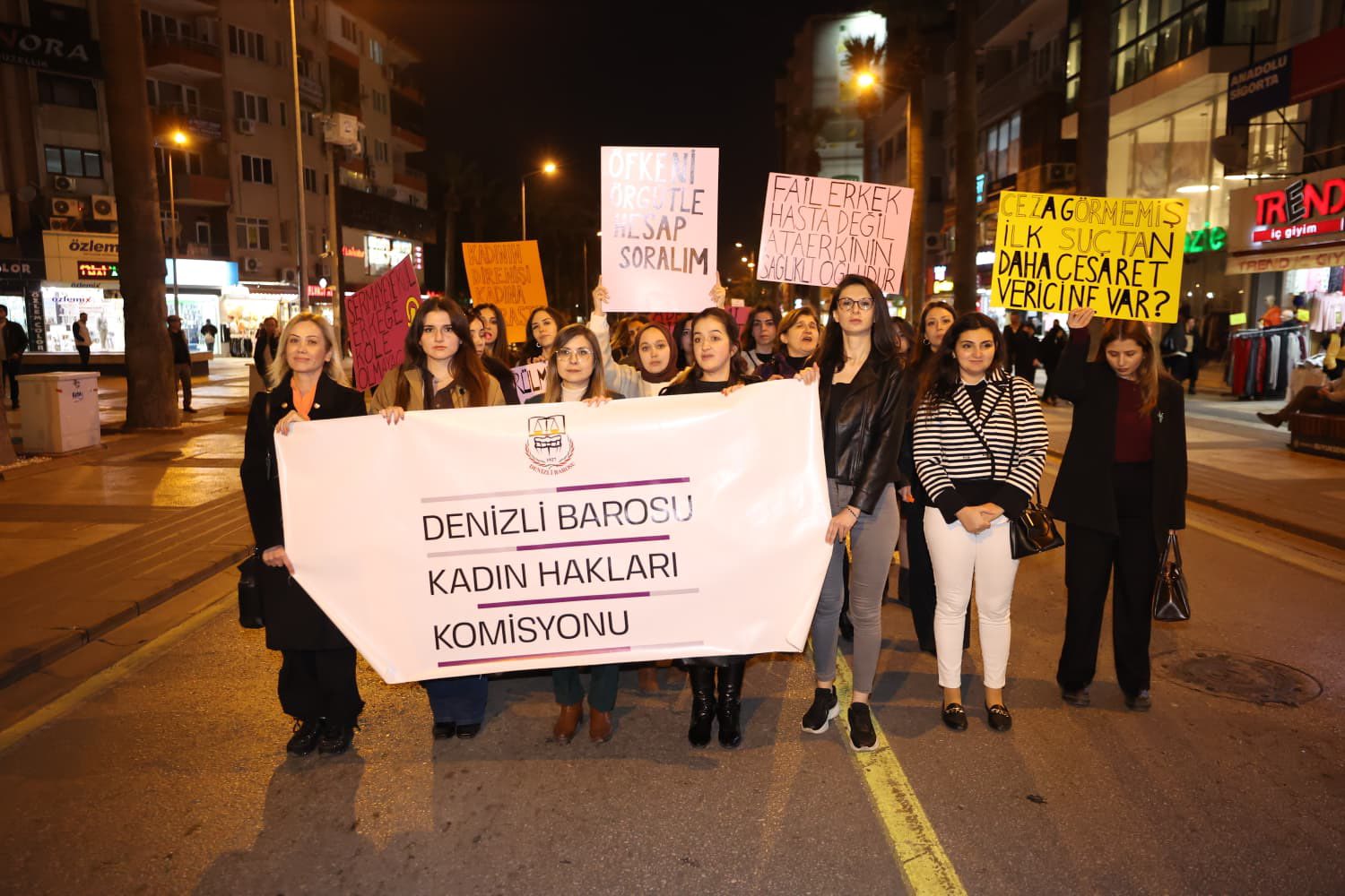 Yürüyüşe Merkezefendi Belediye Başkanı Şeniz Doğan, Denizli Barosu Başkanı Av. Ufuk Kök, Eğitim-İş Genel Başkanı Kadem Özbay, KESK Eş Genel Başkanı Ayfer Koçak ile çok sayıda kurum temsilcisi ve kadın örgütü üyesi katıldı.