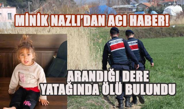 Denizli’nin Honaz ilçesine bağlı Kocabaş Mahallesi’nde kaybolan 4 yaşındaki Nazlı Şeşen’den kahreden haber geldi. Dünden beri aranan minik Nazlı, dere yatağında ölü bulundu.