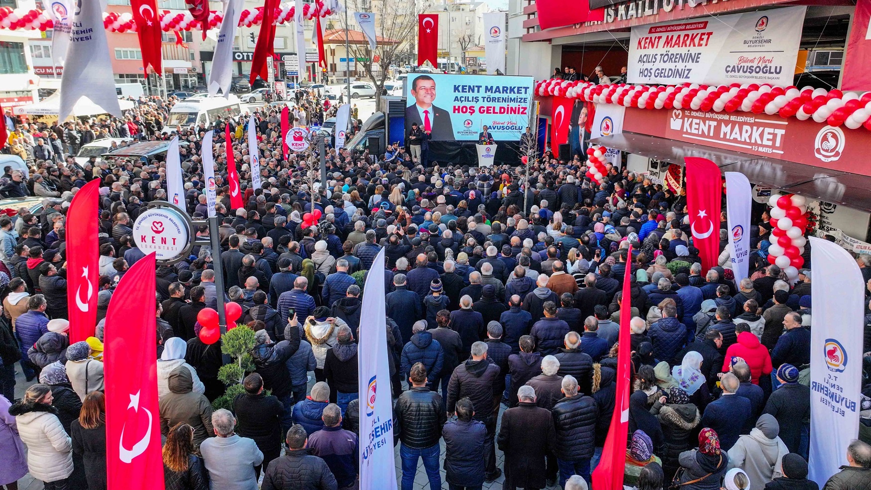 Denizli Büyükşehir Belediyesi, vatandaşların temel gıda ürünlerine daha uygun fiyatlarla ulaşabilmesi amacıyla hayata geçirdiği Kent Market'i, görkemli bir törenle hizmete açtı.